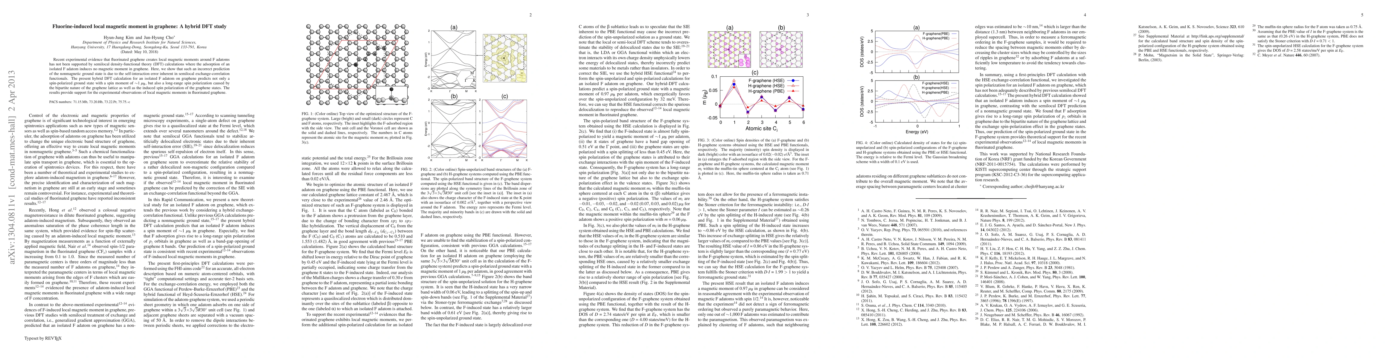 This study uses hybrid density functional theory to demonstrate that fluorinated graphene exhibits local magnetic moments around F adatoms, resolving discrepancies with previous semilocal DFT predictions. The hybrid approach reveals a spin-polarized ground state and long-range spin polarization, supporting experimental findings.