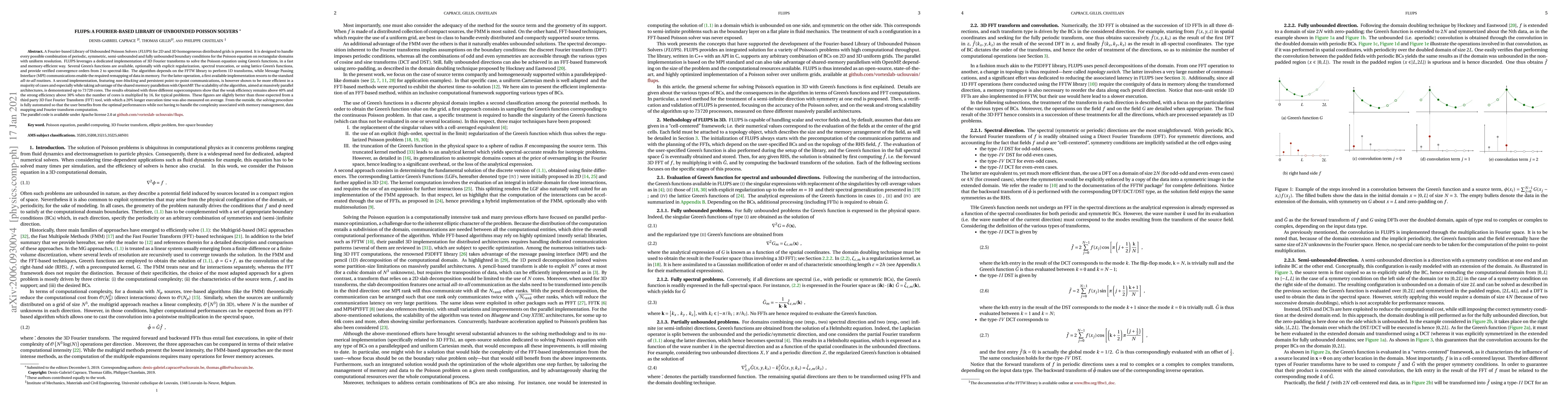 FLUPS is a Fourier-based library for solving the Poisson equation in 2D and 3D with various boundary conditions, utilizing efficient 3D Fourier transforms and Green's functions. It demonstrates high scalability and efficiency on massively parallel architectures, achieving strong efficiency above 30% up to 73,720 cores.