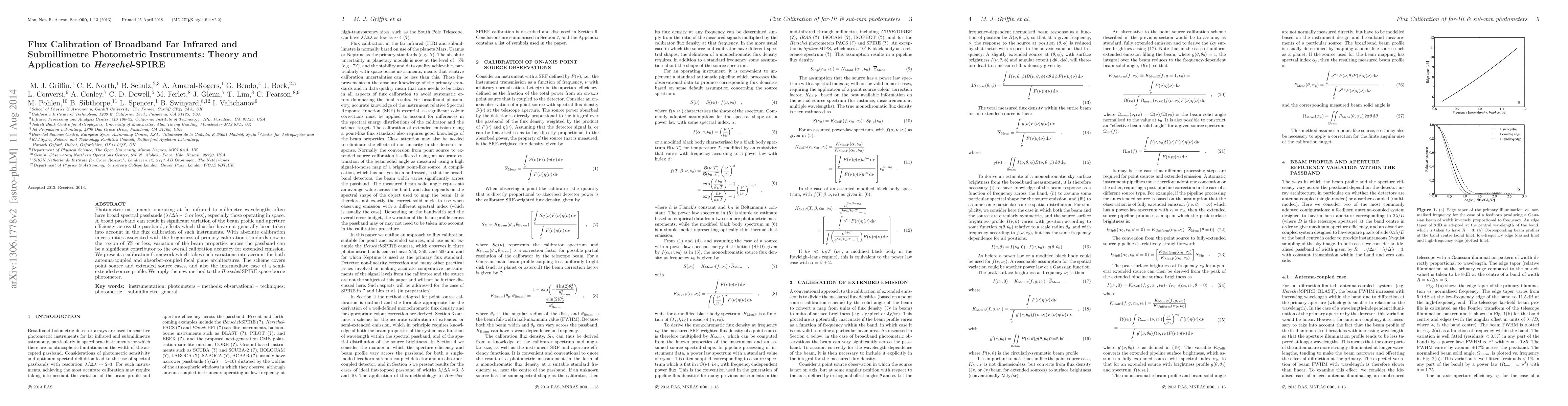 This paper presents a calibration framework addressing variations in beam profile and aperture efficiency across broad spectral passbands of far infrared to submillimetre photometric instruments, crucial for achieving high calibration accuracy. The method is applied to the Herschel-SPIRE photometer, demonstrating its effectiveness for both point and extended sources.