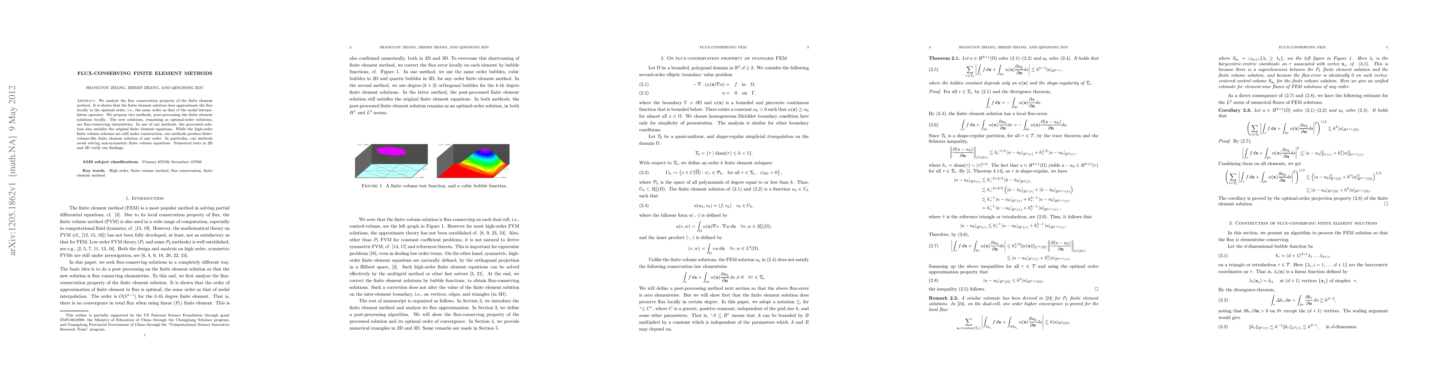 This paper investigates flux conservation in finite element methods, demonstrating that the finite element solution approximates flux locally at the optimal order. It proposes two methods to enhance flux conservation while maintaining optimal accuracy, avoiding non-symmetric finite volume equations, and verified through numerical tests in 2D and 3D.