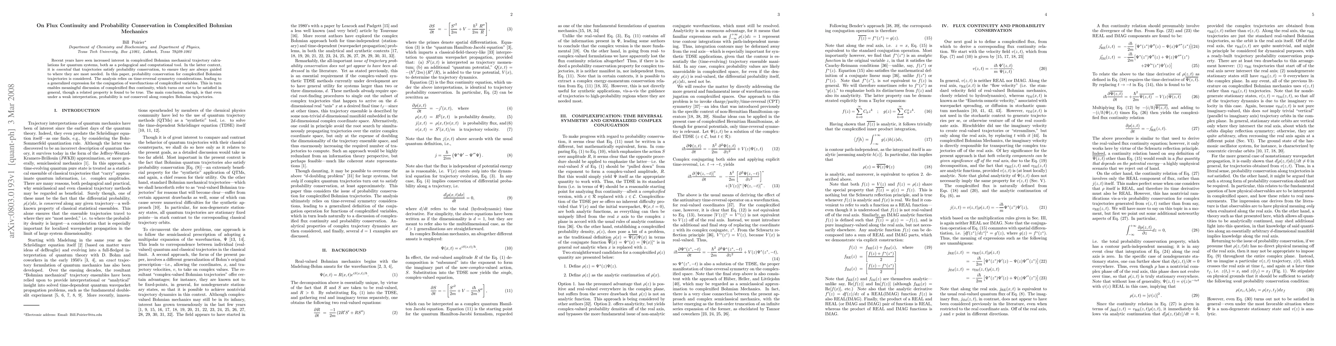 This paper explores probability conservation in complexified Bohmian mechanics, revealing that while complexified flux continuity generally fails, a related property holds. The analysis shows that probability conservation does not apply along complex Bohmian trajectories, even under a weak interpretation.