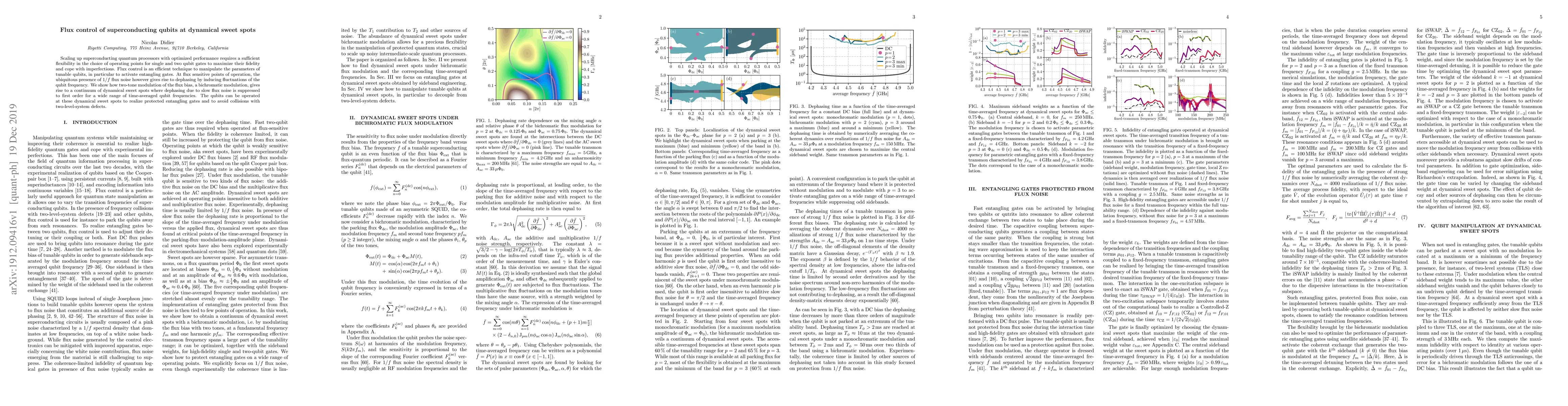 This paper explores flux control techniques to optimize superconducting qubits' performance by identifying dynamical sweet spots where dephasing due to 1/f flux noise is minimized. Bichromatic modulation of the flux bias enables operation at these sweet spots, enhancing gate fidelity and mitigating interference from two-level-system defects.
