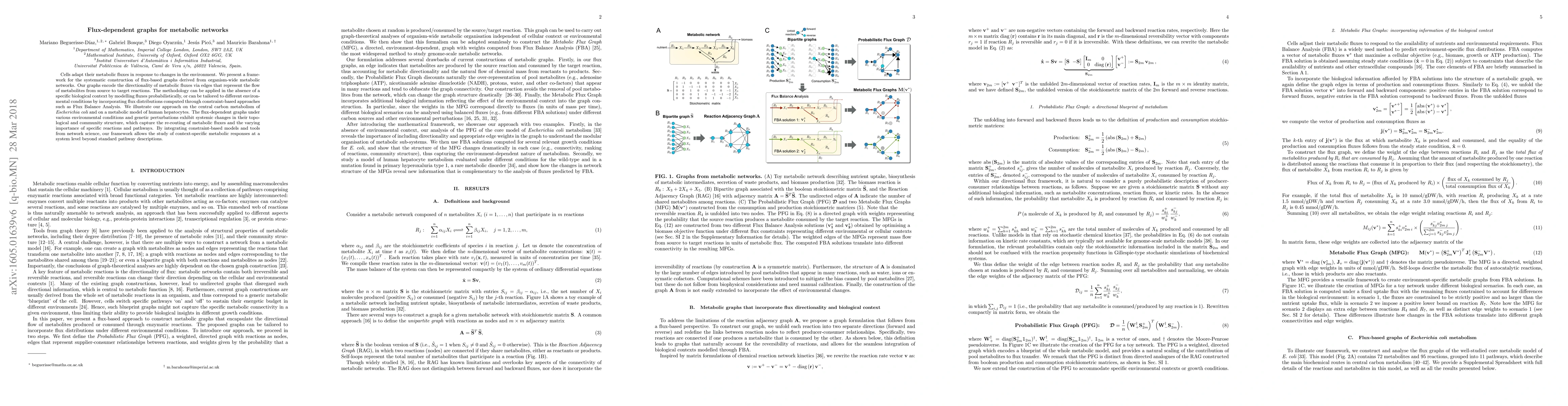 This paper introduces a framework for constructing flux-based graphs from metabolic networks that encode metabolic flux directionality. The methodology can model fluxes probabilistically or incorporate flux distributions under different conditions, enabling the study of systemic changes in metabolic responses to environmental and genetic perturbations.