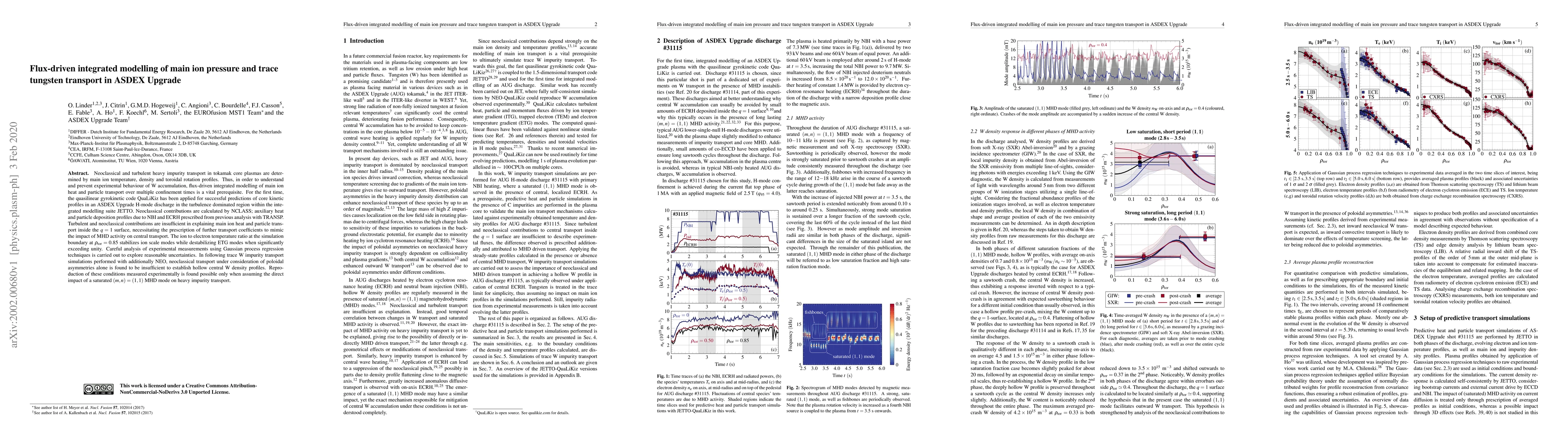 This work is novel in its combined use of QuaLiKiz, NCLASS, and TRANSP for flux-driven modelling of main ion pressure and trace tungsten transport, providing insights into the role of neoclassical and turbulent transport as well as MHD activity.