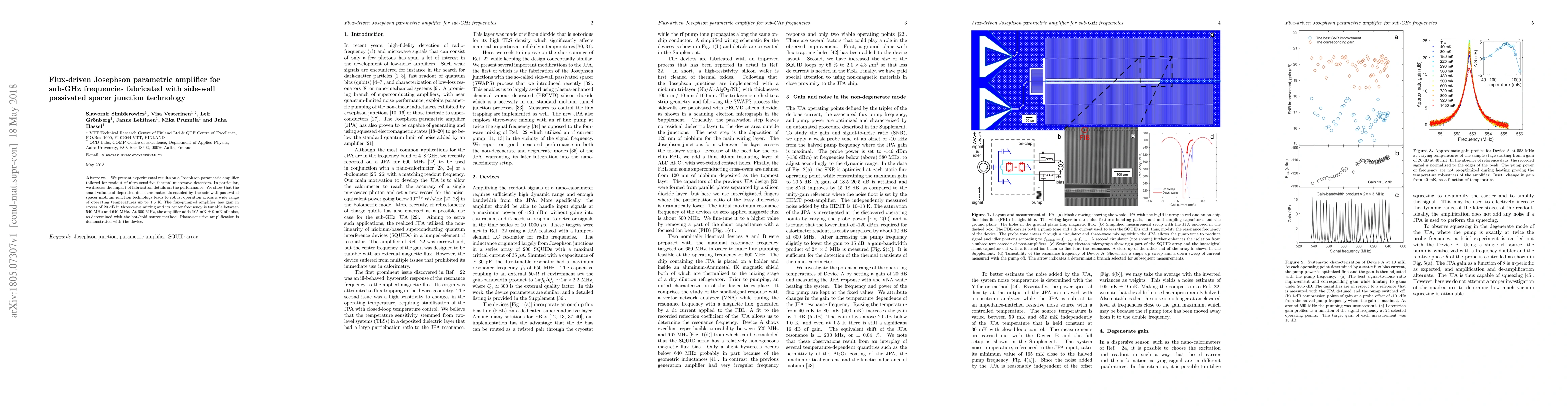 We present experimental results on a Josephson parametric amplifier tailored for readout of ultra-sensitive thermal microwave detectors. In particular, we discuss the impact of fabrication details on the performance. We show that the small volume of deposited dielectric materials enabled by the side-wall passivated spacer niobium junction technology leads to robust operation across a wide range of operating temperatures up to 1.5 K. The flux-pumped amplifier has gain in excess of 20 dB in three-wave mixing and its center frequency is tunable between 540 MHz and 640 MHz. At 600 MHz, the amplifier adds 105 mK $\pm$ 9 mK of noise, as determined with the hot/cold source method. Phase-sensitive amplification is demonstrated with the device.