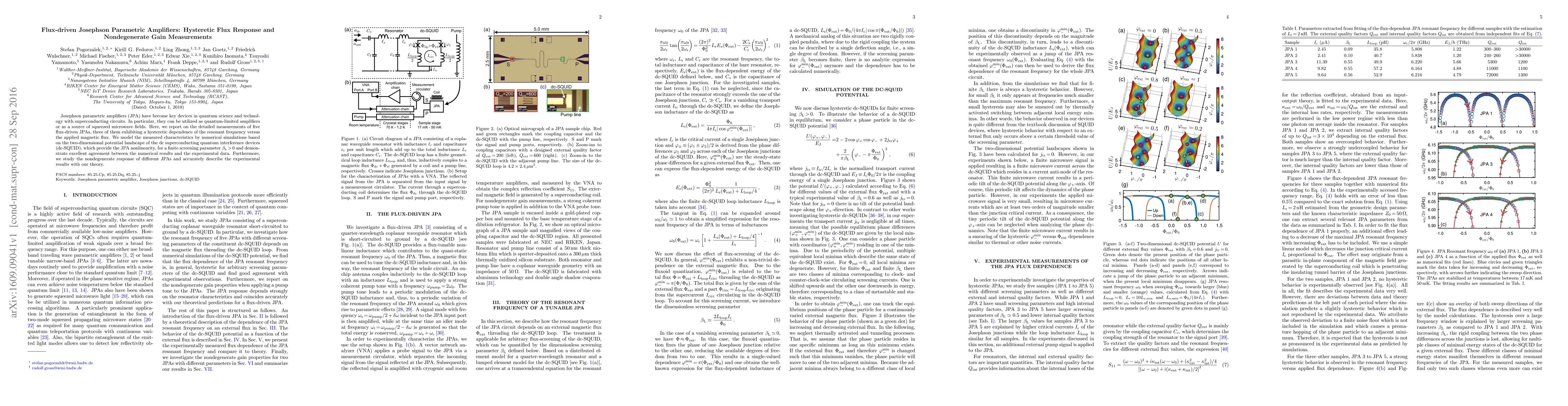 Josephson parametric amplifiers (JPA) have become key devices in quantum science and technology with superconducting circuits. In particular, they can be utilized as quantum-limited amplifiers or as a source of squeezed microwave fields. Here, we report on the detailed measurements of five flux-driven JPAs, three of them exhibiting a hysteretic dependence of the resonant frequency versus the applied magnetic flux. We model the measured characteristics by numerical simulations based on the two-dimensional potential landscape of the dc superconducting quantum interference devices (dc-SQUID), which provide the JPA nonlinearity, for a finite screening parameter $\beta_\mathrm{L}\,{>}\,0$ and demonstrate excellent agreement between the numerical results and the experimental data. Furthermore, we study the nondegenerate response of different JPAs and accurately describe the experimental results with our theory.