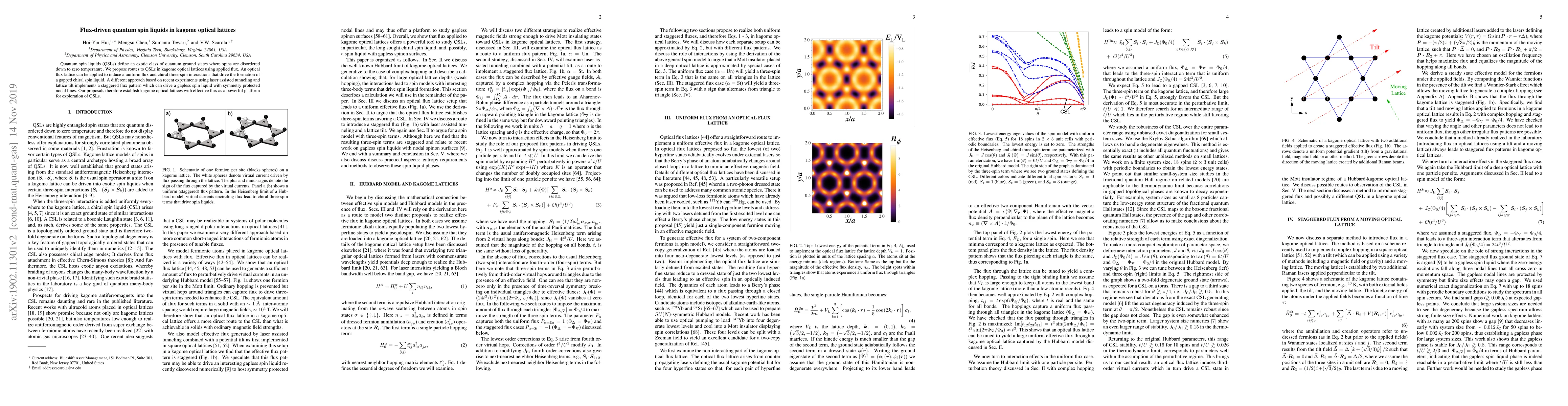 This paper proposes methods to create quantum spin liquids in kagome optical lattices using applied flux, including uniform flux and chiral three-spin interactions to form a gapped chiral spin liquid, and staggered flux patterns for a gapless spin liquid with symmetry-protected nodal lines. The study highlights kagome optical lattices as a promising platform for studying quantum spin liquids.