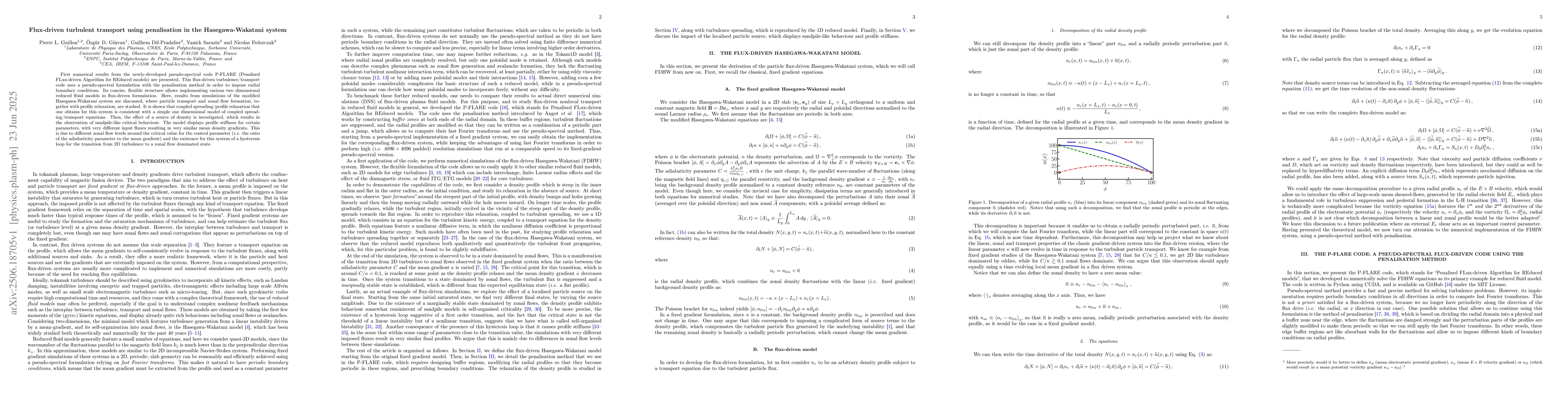 The research utilizes the newly-developed pseudo-spectral code P-FLARE, which employs a flux-driven formulation with penalization for radial boundary conditions. This code allows for the implementation of various 2D reduced fluid models, demonstrated here with the modified Hasegawa-Wakatani system.