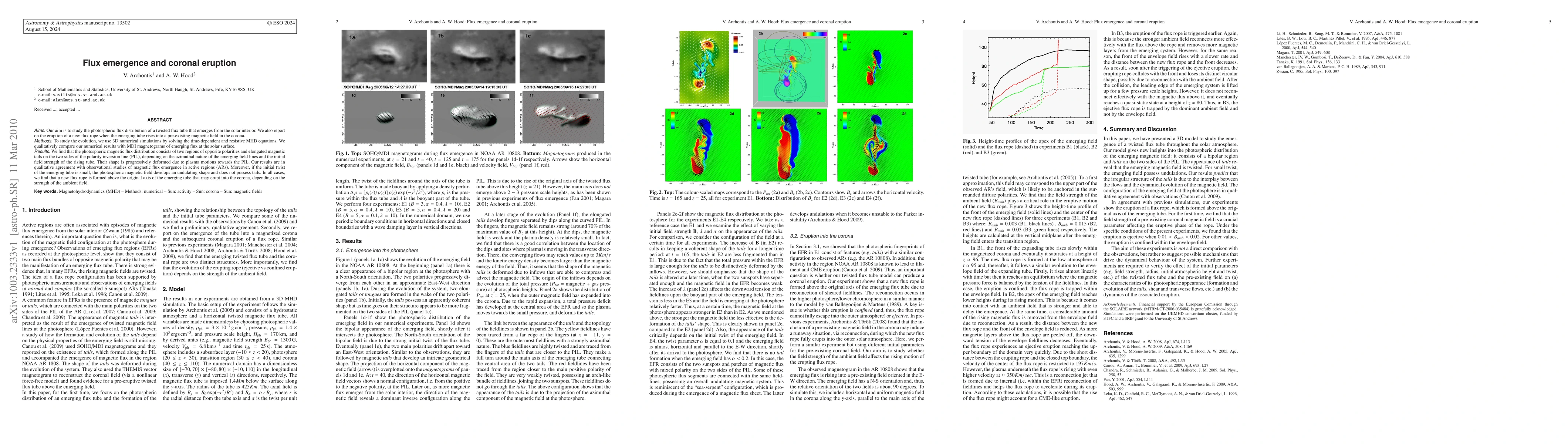 Our aim is to study the photospheric flux distribution of a twisted flux tube that emerges from the solar interior. We also report on the eruption of a new flux rope when the emerging tube rises into a pre-existing magnetic field in the corona. To study the evolution, we use 3D numerical simulations by solving the time-dependent and resistive MHD equations. We qualitatively compare our numerical results with MDI magnetograms of emerging flux at the solar surface. We find that the photospheric magnetic flux distribution consists of two regions of opposite polarities and elongated magnetic tails on the two sides of the polarity inversion line (PIL), depending on the azimuthal nature of the emerging field lines and the initial field strength of the rising tube. Their shape is progressively deformed due to plasma motions towards the PIL. Our results are in qualitative agreement with observational studies of magnetic flux emergence in active regions (ARs). Moreover, if the initial twist of the emerging tube is small, the photospheric magnetic field develops an undulating shape and does not possess tails. In all cases, we find that a new flux rope is formed above the original axis of the emerging tube that may erupt into the corona, depending on the strength of the ambient field.