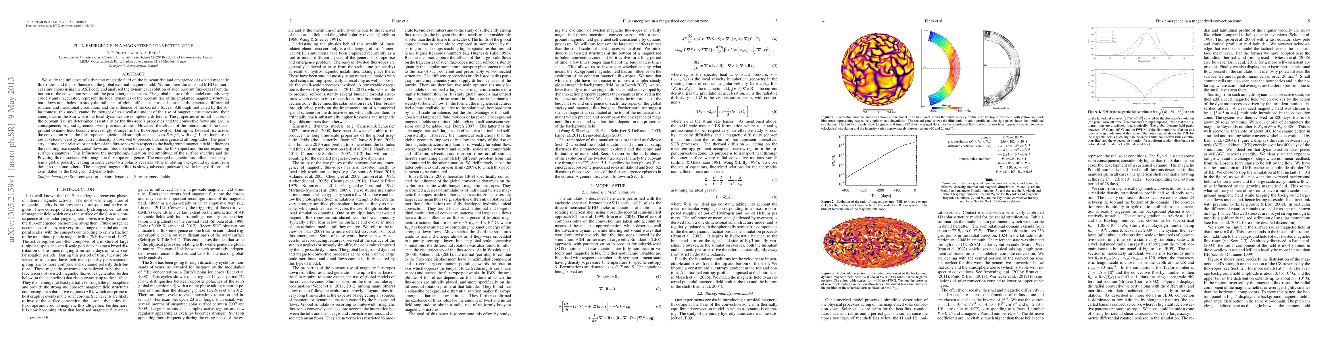 We study the influence of a dynamo magnetic field on the buoyant rise and emergence of twisted magnetic flux-ropes, and their influence on the global external magnetic field. We ran 3D MHD numerical simulations using the ASH code and analysed the dynamical evolution of such buoyant flux-ropes from the bottom of the convection zone until the post-emergence phases. The global nature of this model represents very crudely and inaccurately the local dynamics of the buoyant rise, but allows to study the influence of global effects such as self-consistently generated differential rotation, meridional circulation and Coriolis forces. Although motivated by the solar context, this model cannot be thought of as a realistic model of the rise of magnetic structures and their emergence in the Sun where the local dynamics are completely different. The properties of initial phases of the buoyant rise in good agreement with previous studies. However, the effects of the interaction of the background dynamo field become increase as the flux-ropes evolve. During the buoyant rise across the CZ, the flux-rope's magnetic field strength and scales as $rho^a$, with $a\lesssim 1$. An increase of velocity, density and current precedes flux emergence at all longitudes. The geometry, latitude and relative orientation of the flux-ropes with respect to the background magnetic field influences the rise speeds, zonal flow amplitudes (which develop within the flux-ropes) and the corresponding surface signatures. This influences the morphology, duration and amplitude of the associated surface shearing and Poynting flux. The emerged flux influences the system's global polarity, leading in some cases to a polarity reversal while inhibiting background dynamo from doing so in some others. The emerged magnetic flux is slowly advected poleward, while being diffused and assimilated by the background dynamo field.