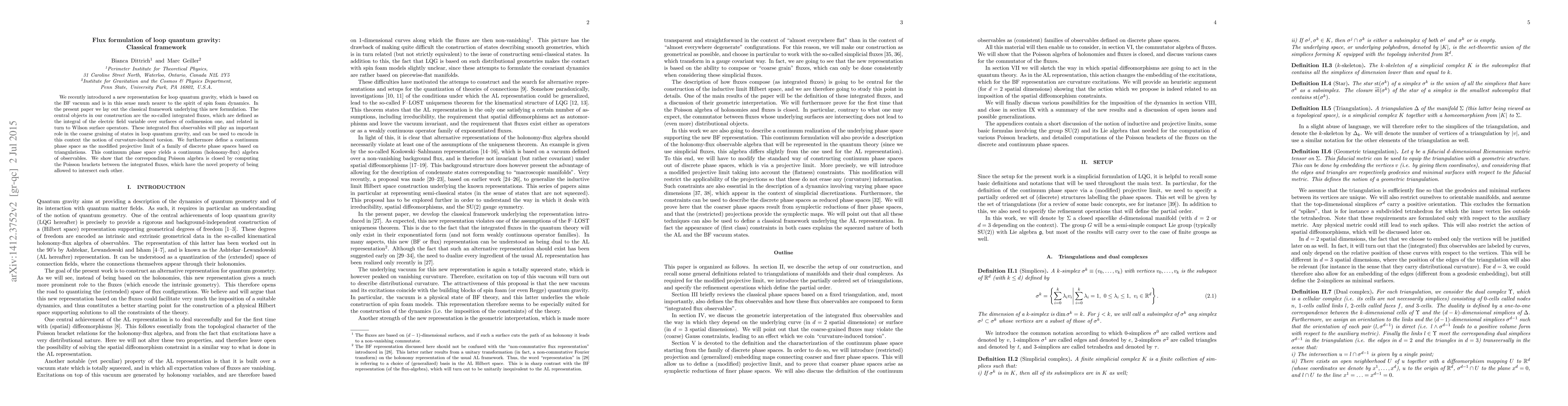 We recently introduced a new representation for loop quantum gravity, which is based on the BF vacuum and is in this sense much nearer to the spirit of spin foam dynamics. In the present paper we lay out the classical framework underlying this new formulation. The central objects in our construction are the so-called integrated fluxes, which are defined as the integral of the electric field variable over surfaces of codimension one, and related in turn to Wilson surface operators. These integrated flux observables will play an important role in the coarse graining of states in loop quantum gravity, and can be used to encode in this context the notion of curvature-induced torsion. We furthermore define a continuum phase space as the modified projective limit of a family of discrete phase spaces based on triangulations. This continuum phase space yields a continuum (holonomy-flux) algebra of observables. We show that the corresponding Poisson algebra is closed by computing the Poisson brackets between the integrated fluxes, which have the novel property of being allowed to intersect each other.