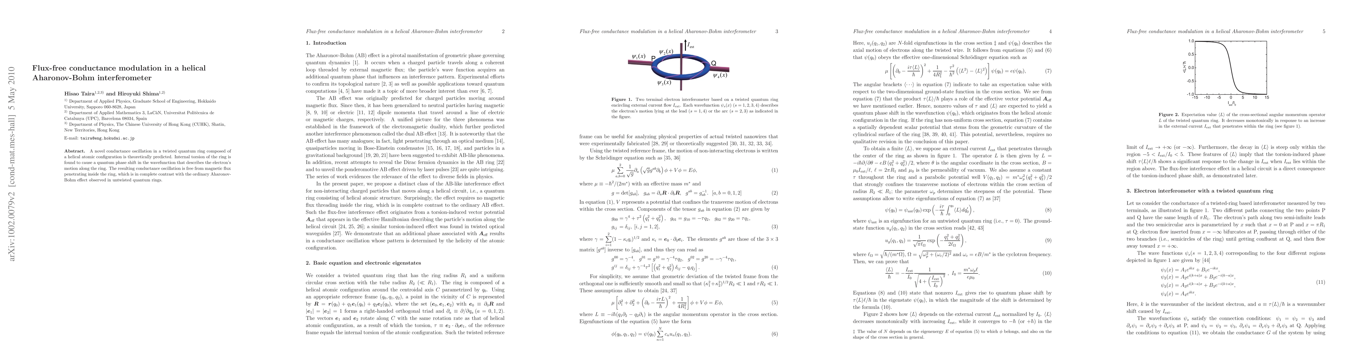 A new type of conductance oscillation is predicted in a twisted quantum ring with internal torsion, avoiding the need for magnetic flux inside the ring.