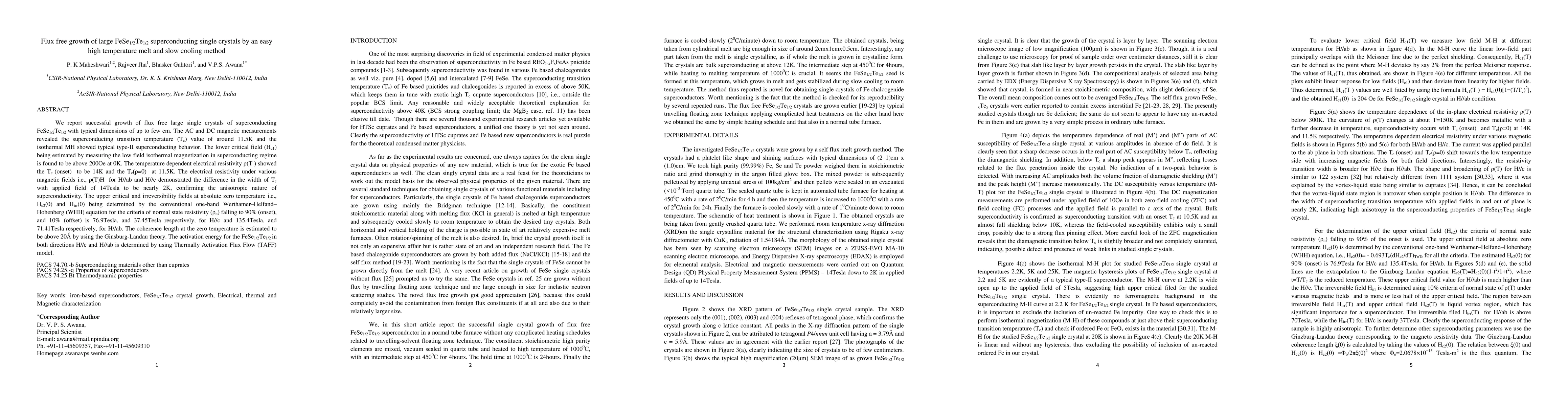 This paper reports the successful growth of large flux-free superconducting FeSe1/2Te1/2 single crystals using a high-temperature melt and slow cooling method. The crystals exhibit a superconducting transition temperature (Tc) of around 11.5K and demonstrate type-II superconductivity with a lower critical field above 200 Oe at 0K.