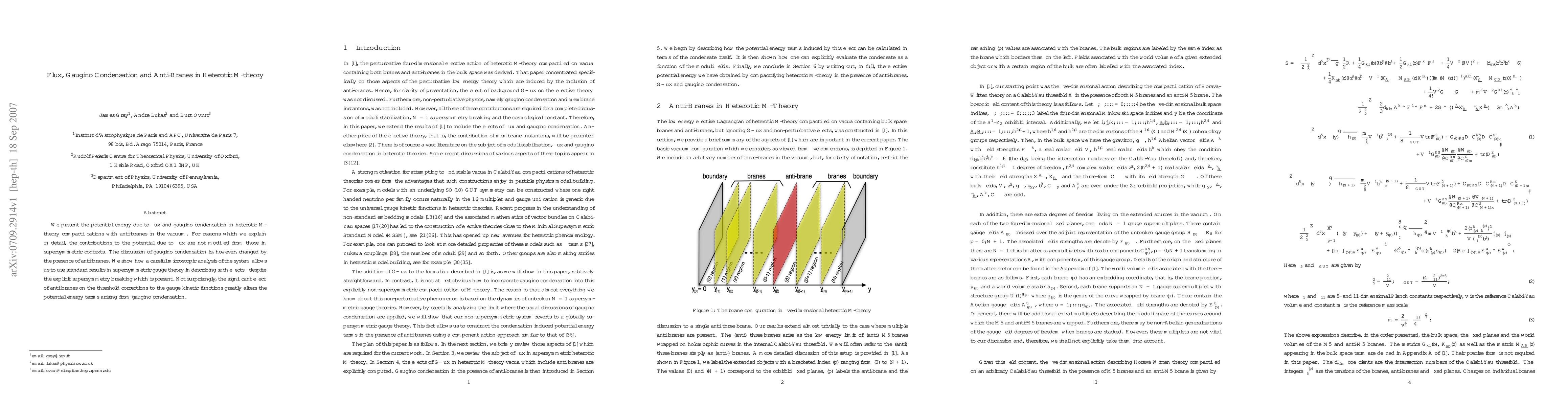 This paper examines the potential energy contributions from flux and gaugino condensation in heterotic M-theory compactifications with anti-branes. While flux contributions remain consistent with supersymmetric contexts, gaugino condensation effects are significantly altered by anti-branes, yet standard supersymmetric gauge theory results can still describe these changes despite explicit supersymmetry breaking.