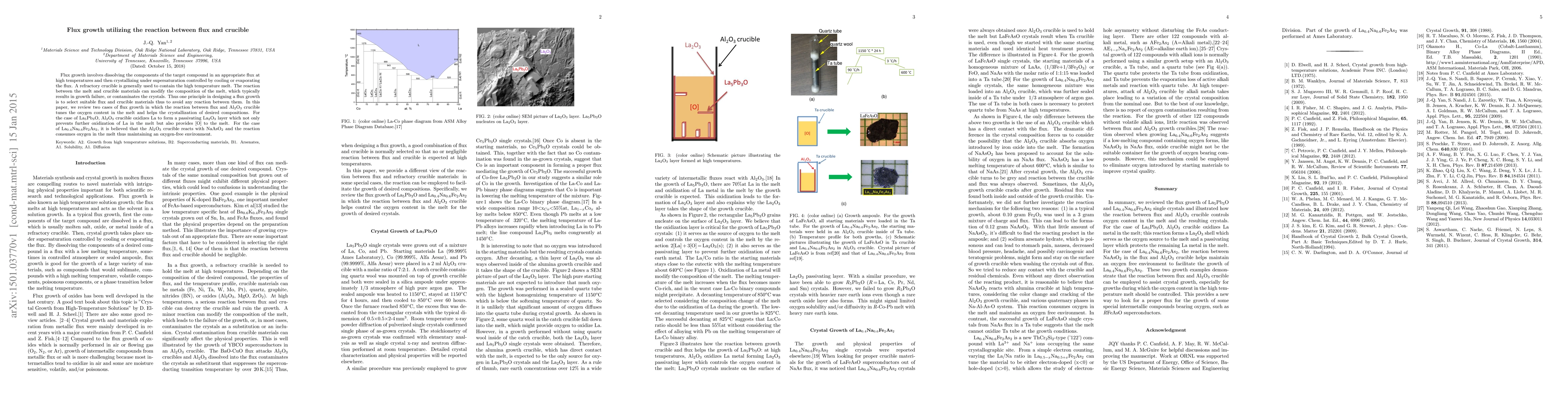 This paper reviews two flux growth cases where the reaction between flux and Al$_2$O$_3$ crucibles tunes oxygen content in the melt, aiding in crystallization: La$_5$Pb$_3$O benefits from a La$_2$O$_3$ passivating layer, while La$_{0.4}$Na$_{0.6}$Fe$_2$As$_2$ benefits from an oxygen-free environment due to NaAsO$_2$ reaction.