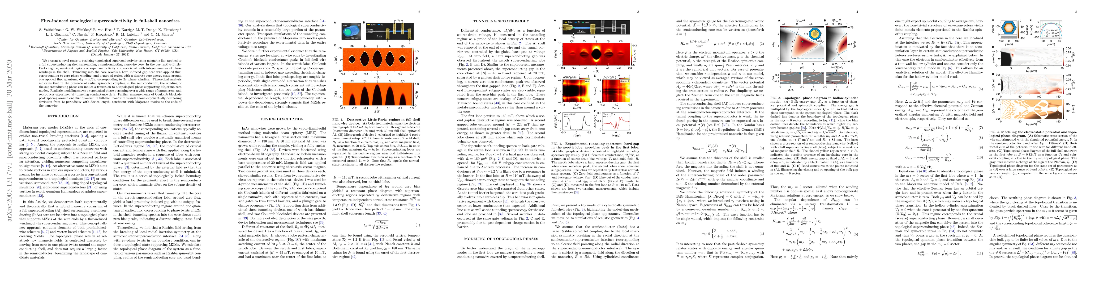 This paper explores topological superconductivity in a superconducting shell surrounding a semiconducting nanowire core, induced by magnetic flux, leading to Majorana zero modes. Experimental tunneling data confirms the theoretical predictions of a persistent topological phase and Majorana modes.