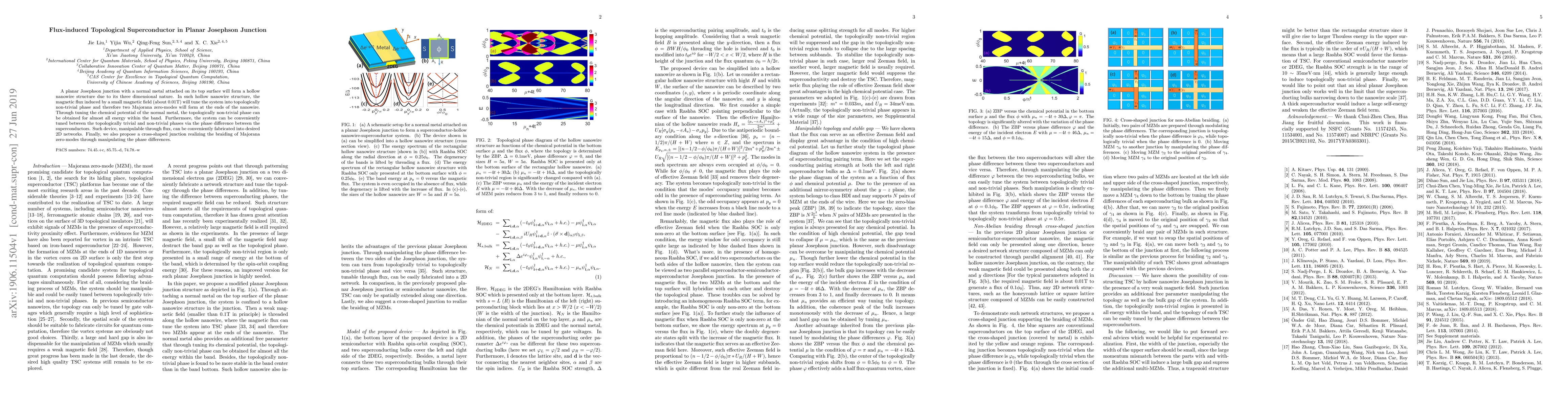 A planar Josephson junction with a normal metal attached on its top surface will form a hollow nanowire structure due to its three dimensional nature. In such hollow nanowire structure, the magnetic flux induced by a small magnetic field (about 0.01T) will tune the system into topologically non-trivial phase and therefore two Majorana zero-modes will form at the ends of the nanowire. Through tuning the chemical potential of the normal metal, the topologically non-trivial phase can be obtained for almost all energy within the band. Furthermore, the system can be conveniently tuned between the topologically trivial and non-trivial phases via the phase difference between the superconductors. Such device, manipulable through flux, can be conveniently fabricated into desired 2D networks. Finally, we also propose a cross-shaped junction realizing the braiding of Majorana zero-modes through manipulating the phase differences.