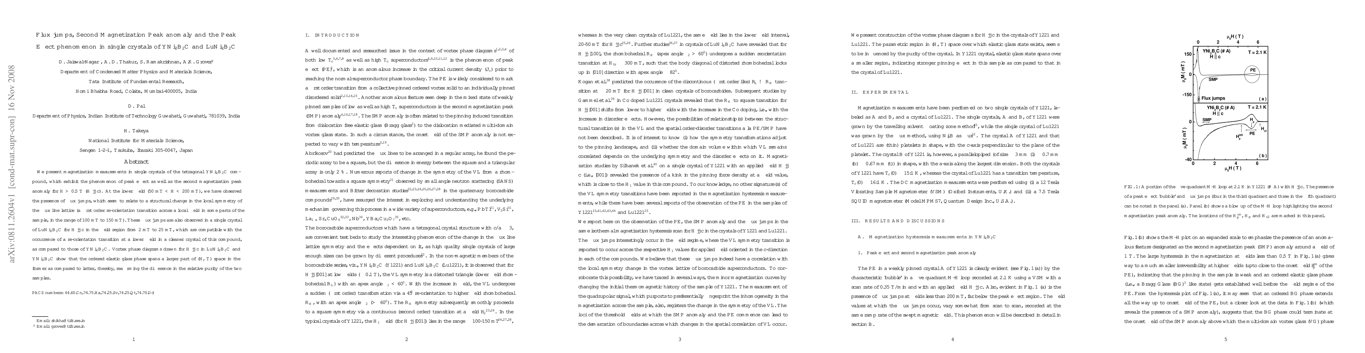 This study investigates magnetization phenomena in single crystals of $YNi_2B_2C$ and $LuNi_2B_2C$, revealing flux jumps and structural changes associated with local symmetry transitions in the flux line lattice, and identifying the peak effect and second magnetization peak anomaly, with differences in vortex phase diagrams attributed to sample purity.