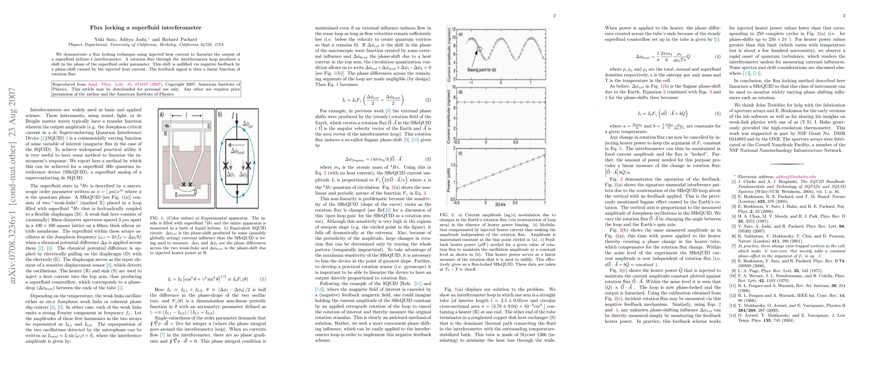 We demonstrate a flux locking technique using injected heat current to linearize the output of a superfluid helium-4 interferometer. A rotation flux through the interferometer loop produces a shift in the phase of the superfluid order parameter. This shift is nullified via negative feedback by a phase-shift caused by the injected heat current. The feedback signal is then a linear function of rotation flux.