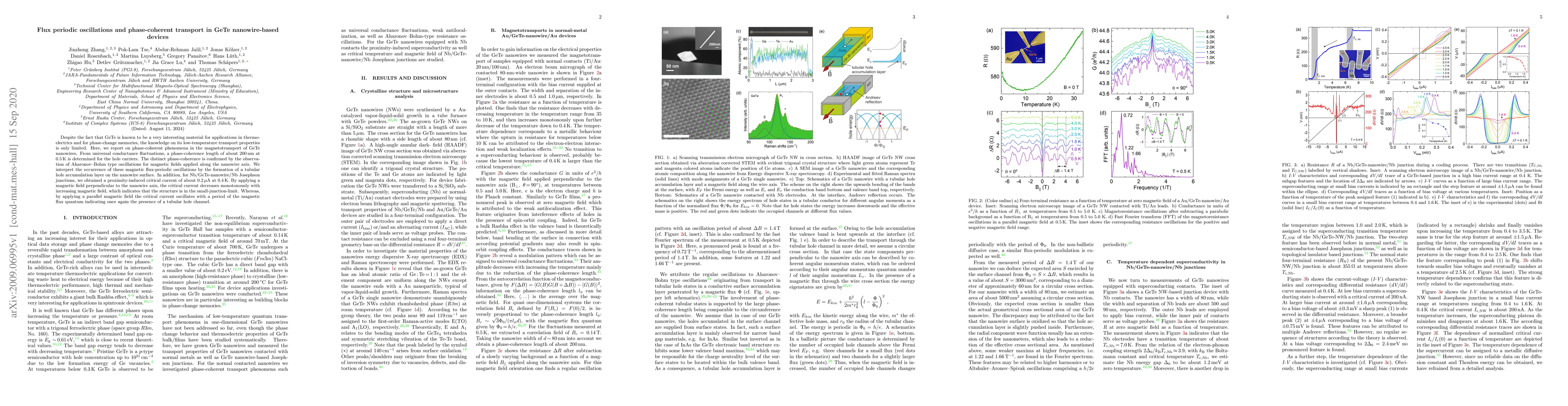 This paper investigates phase-coherent transport in GeTe nanowires, revealing a phase-coherence length of 200nm at 0.5K and Aharonov-Bohm oscillations, indicating a tubular hole accumulation layer. Additionally, Nb/GeTe-nanowire/Nb Josephson junctions show a proximity-induced critical current that varies with perpendicular and parallel magnetic fields, confirming the small-junction limit and tubular hole channel.