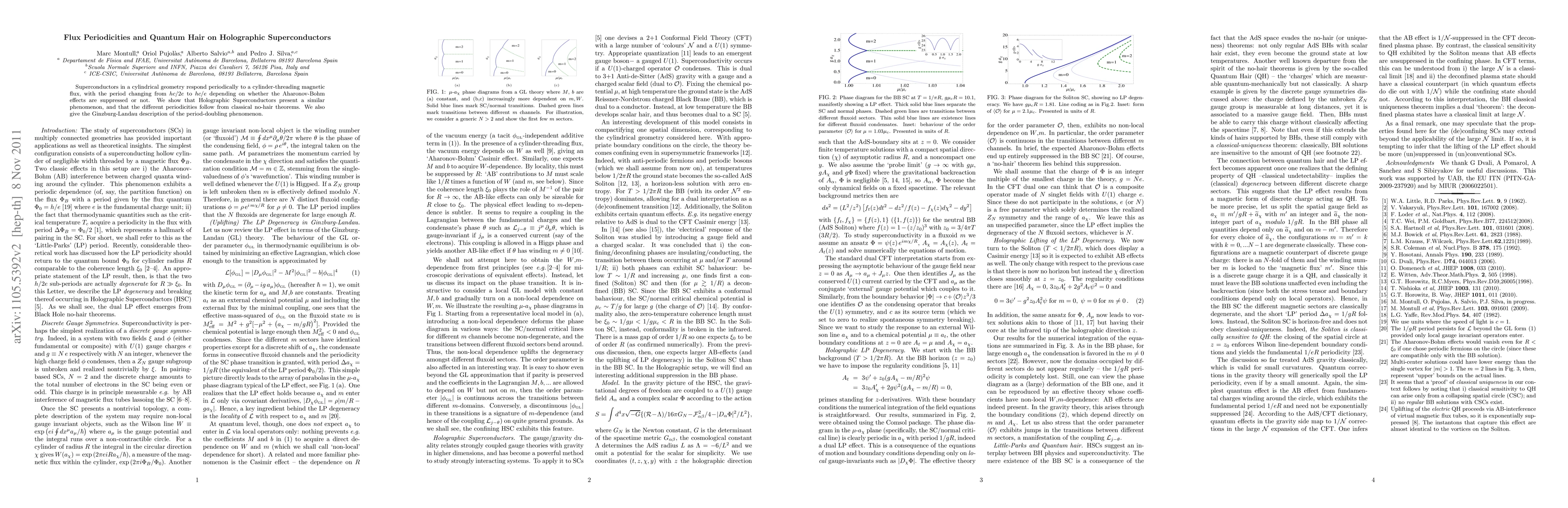 This paper investigates the flux periodicities in holographic superconductors, revealing a period-doubling effect akin to superconductors in cylindrical geometry. The study connects these periodicities to classical no-hair theorems and provides a Ginzburg-Landau description of the phenomenon.