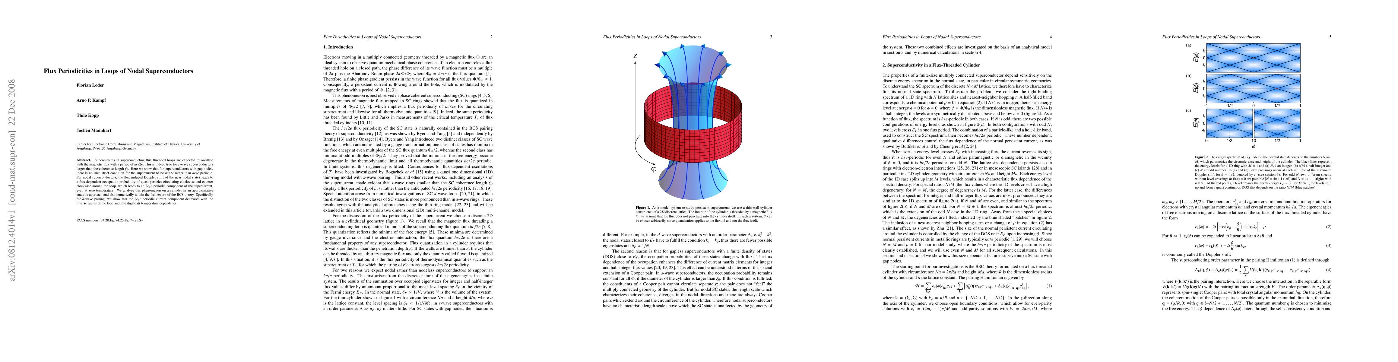 This paper investigates the periodicity of supercurrents in superconducting flux loops with nodal superconductors, revealing that unlike s-wave superconductors, nodal superconductors exhibit an hc/e periodic component due to flux-induced Doppler shifts, even at zero temperature. The study provides both analytic and numerical analyses, focusing on d-wave pairing and its dependence on loop size and temperature.