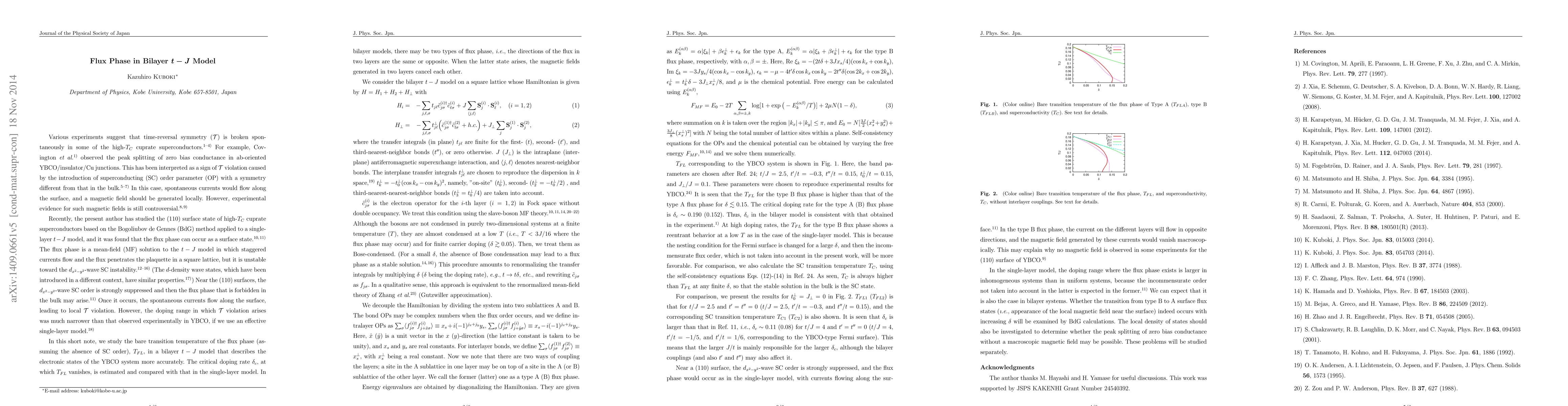 This work is novel because it investigates the flux phase in bilayer t-J models and its potential impact on superconductivity, providing new insights into the behavior of YBCO.
