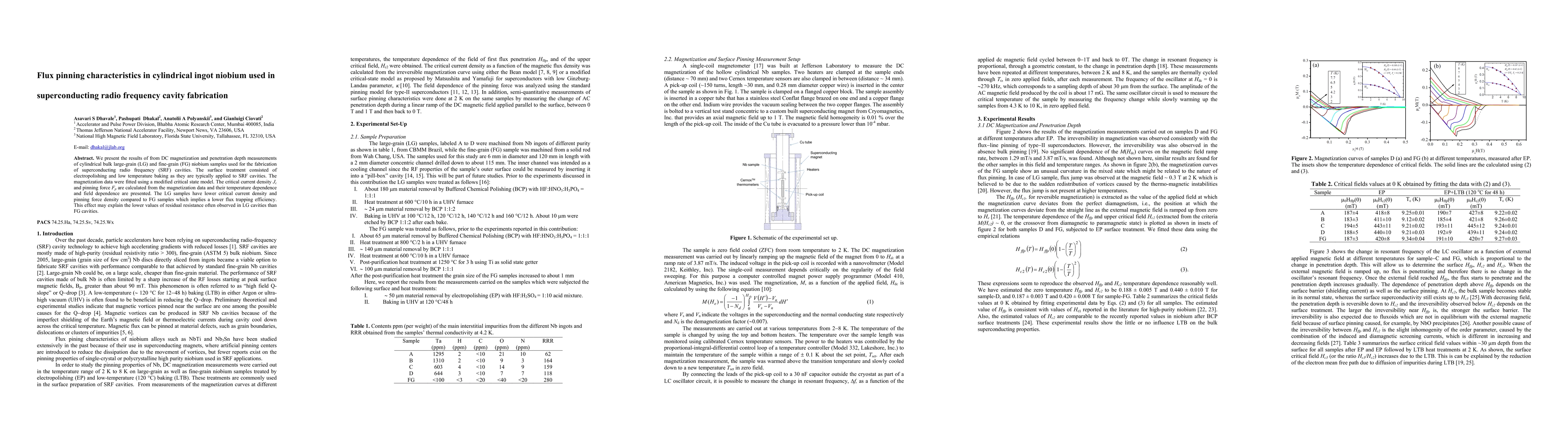The paper presents a detailed analysis of flux pinning characteristics in niobium samples using DC magnetization and penetration depth measurements, along with a modified critical state model for calculating Jc and Fp.