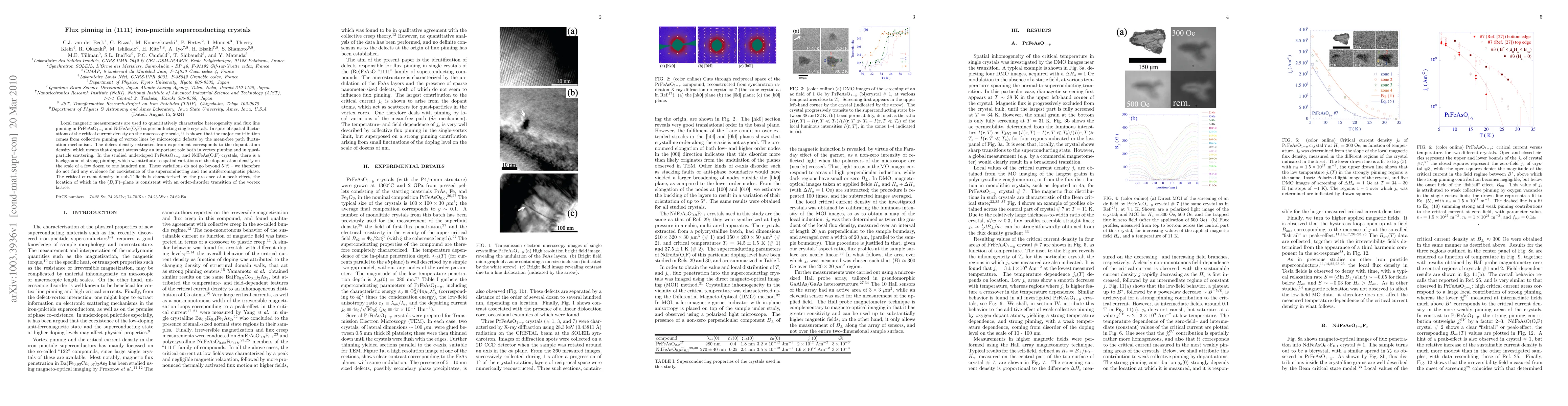 Local magnetic measurements are used to quantitatively characterize heterogeneity and flux line pinning in PrFeAsO_1-y and NdFeAs(O,F) superconducting single crystals. In spite of spatial fluctuations of the critical current density on the macroscopic scale, it is shown that the major contribution comes from collective pinning of vortex lines by microscopic defects by the mean-free path fluctuation mechanism. The defect density extracted from experiment corresponds to the dopant atom density, which means that dopant atoms play an important role both in vortex pinning and in quasiparticle scattering. In the studied underdoped PrFeAsO_1-y and NdFeAs(O,F) crystals, there is a background of strong pinning, which we attribute to spatial variations of the dopant atom density on the scale of a few dozen to one hundred nm. These variations do not go beyond 5% - we therefore do not find any evidence for coexistence of the superconducting and the antiferromagnetic phase. The critical current density in sub-T fields is characterized by the presence of a peak effect, the location of which in the (B,T)-plane is consistent with an order-disorder transition of the vortex lattice.
