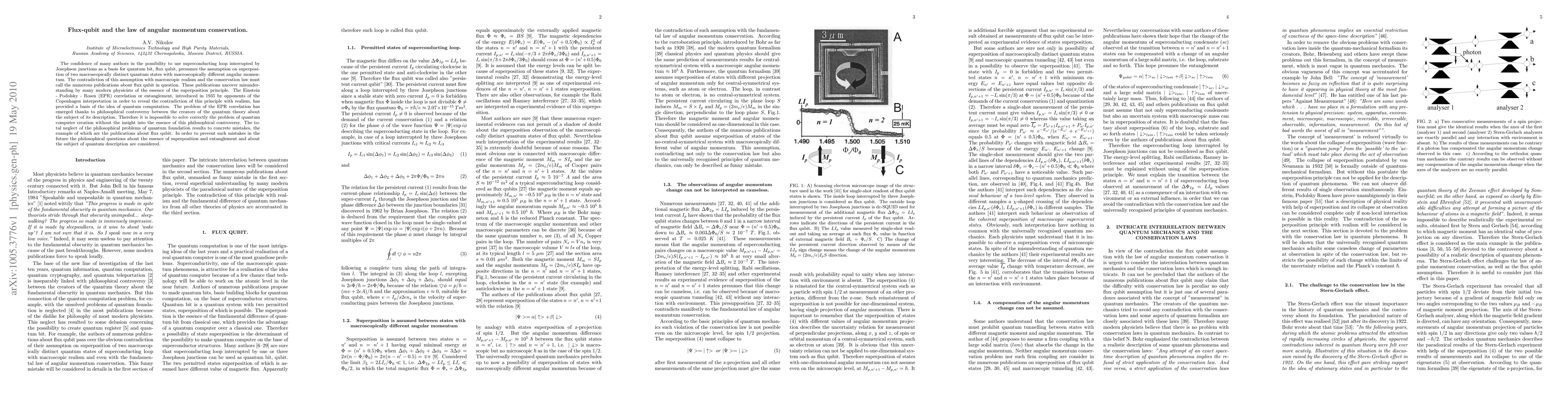 The confidence of many authors in the possibility to use superconducting loop interrupted by Josephson junctions as a basis for quantum bit, flux qubit, presumes the assumption on superposition of two macroscopically distinct quantum states with macroscopically different angular momentum. The contradiction of this assumption with macroscopic realism and the conservation law must call the numerous publications about flux qubit in question. These publications uncover misunderstanding by many modern physicists of the essence of the superposition principle. The Einstein - Podolsky - Rosen (EPR) correlation or entanglement, introduced in 1935 by opponents of the Copenhagen interpretation in order to reveal the contradiction of this principle with realism, has provided a basis of the idea of quantum computation. The problem of the EPR correlation has emerged thanks to philosophical controversy between the creators of the quantum theory about the subject of its description. Therefore it is impossible to solve correctly the problem of quantum computer creation without the insight into the essence of this philosophical controversy. The total neglect of the philosophical problems of quantum foundation results to concrete mistakes, the example of which are the publications about flux qubit. In order to prevent such mistakes in the future the philosophical questions about the essence of superposition and entanglement and about the subject of quantum description are considered.