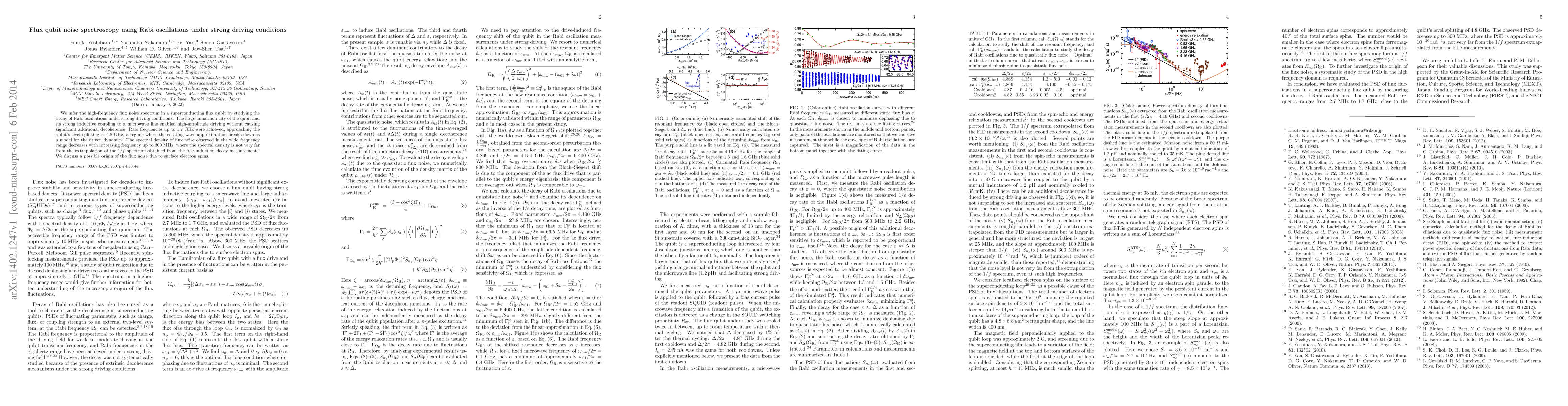 We infer the high-frequency flux noise spectrum in a superconducting flux qubit by studying the decay of Rabi oscillations under strong driving conditions. The large anharmonicity of the qubit and its strong inductive coupling to a microwave line enabled high-amplitude driving without causing significant additional decoherence. Rabi frequencies up to 1.7 GHz were achieved, approaching the qubit's level splitting of 4.8 GHz, a regime where the rotating-wave approximation breaks down as a model for the driven dynamics. The spectral density of flux noise observed in the wide frequency range decreases with increasing frequency up to 300 MHz, where the spectral density is not very far from the extrapolation of the 1/f spectrum obtained from the free-induction-decay measurements. We discuss a possible origin of the flux noise due to surface electron spins.