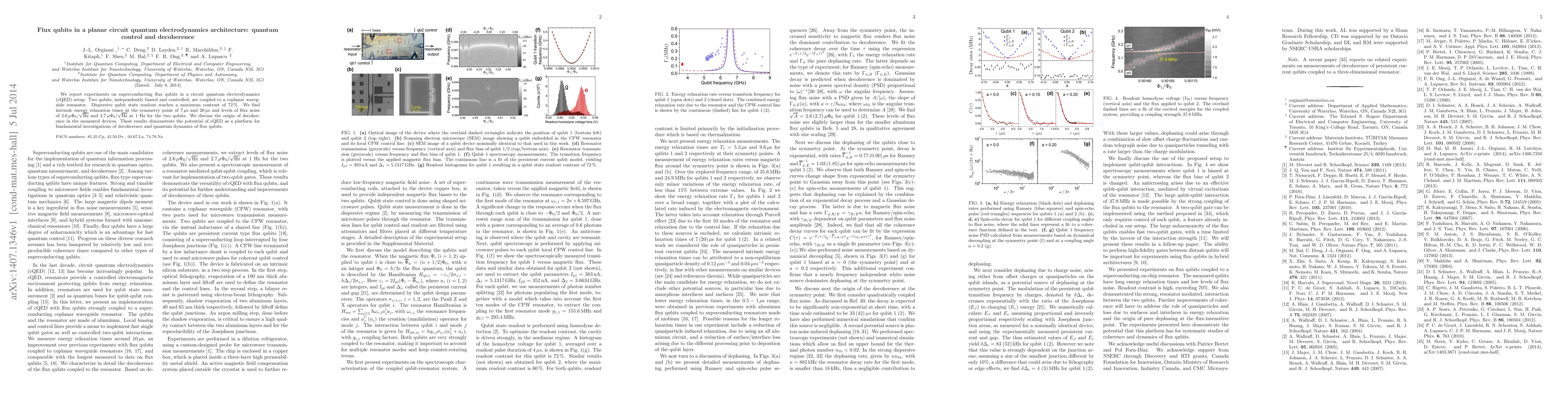 This paper investigates superconducting flux qubits in a circuit quantum electrodynamics setup, achieving dispersive readout with 72% contrast. It reports intrinsic relaxation times of 7 and 20 microseconds and flux noise levels of 2.6 and 2.7 micro-flux quanta per square root of Hz, discussing the origins of decoherence and the potential of cQED for quantum dynamics studies.