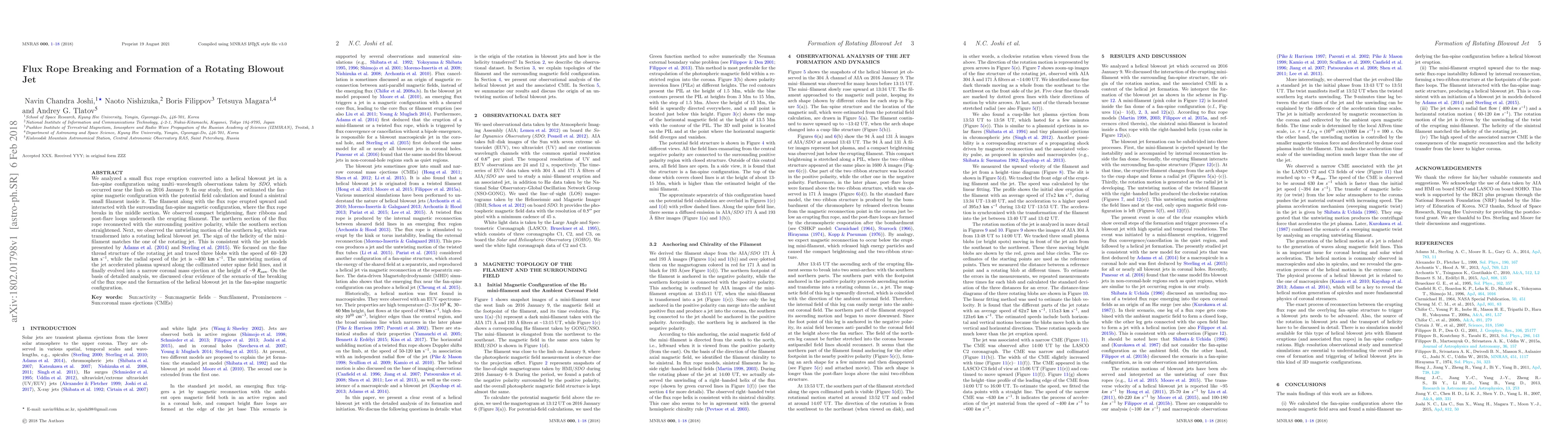 We analyzed a small flux rope eruption converted into a helical blowout jet in a fan-spine configuration using multi-wavelength observations taken by SDO, which occurred near the limb on 2016 January 9. In our study, first, we estimated the fan-spine magnetic configuration with the potential field calculation and found a sinistral small filament inside it. The filament along with the flux rope erupted upward and interacted with the surrounding fan- spine magnetic configuration, where the flux rope breaks in the middle section. We observed compact brightening, flare ribbons and post-flare loops underneath the erupting filament. The northern section of the flux rope reconnected with the surrounding positive polarity, while the southern section straightened. Next, we observed the untwisting motion of the southern leg, which was transformed into a rotating helical blowout jet. The sign of the helicity of the mini-filament matches the one of the rotating jet. This is consistent with the jet models presented by Adams et al. (2014) and Sterling et al. (2015). We focused on the fine thread structure of the rotating jet and traced three blobs with the speed of 60-120 km/s, while the radial speed of the jet is approx 400 km/s. The untwisting motion of the jet accelerated plasma upward along the collimated outer spine field lines, and it finally evolved into a narrow coronal mass ejection at the height of approx 9 Rsun . On the basis of the detailed analysis, we discussed clear evidence of the scenario of the breaking of the flux rope and the formation of the helical blowout jet in the fan-spine magnetic configuration.