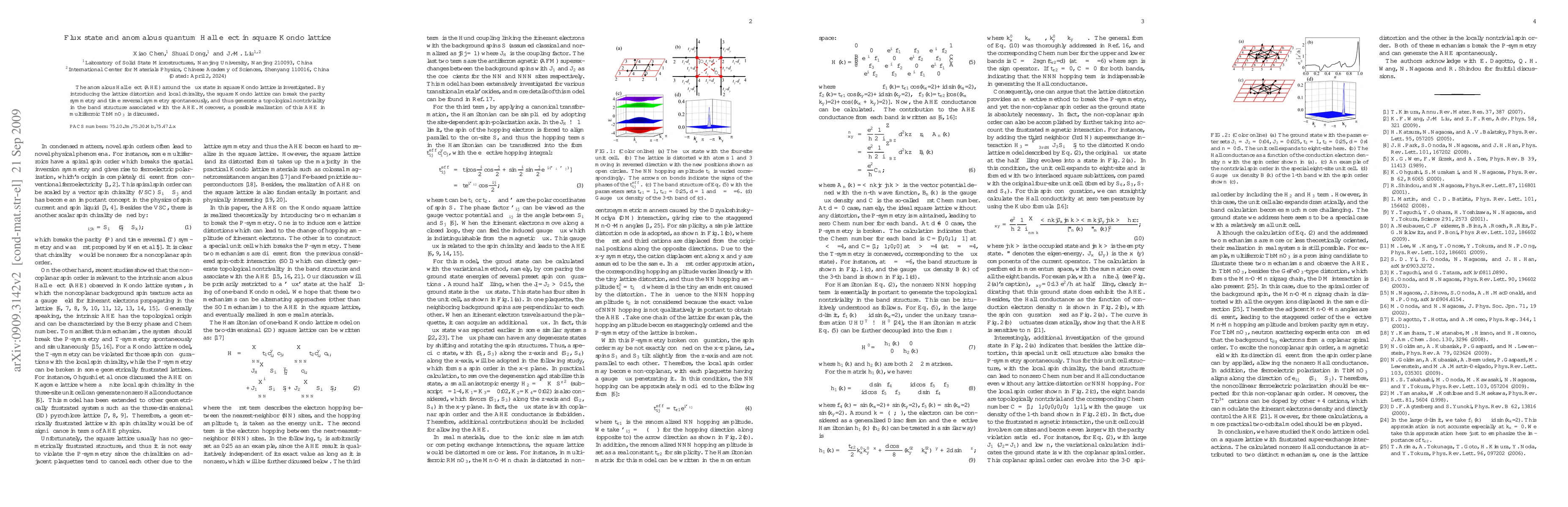 The research investigates the anomalous Hall effect in a square Kondo lattice with lattice distortion and local chirality, leading to spontaneous breaking of parity and time reversal symmetries, generating topological nontriviality. A potential realization of this effect in the multiferroic material TbMnO$_3$ is also discussed.