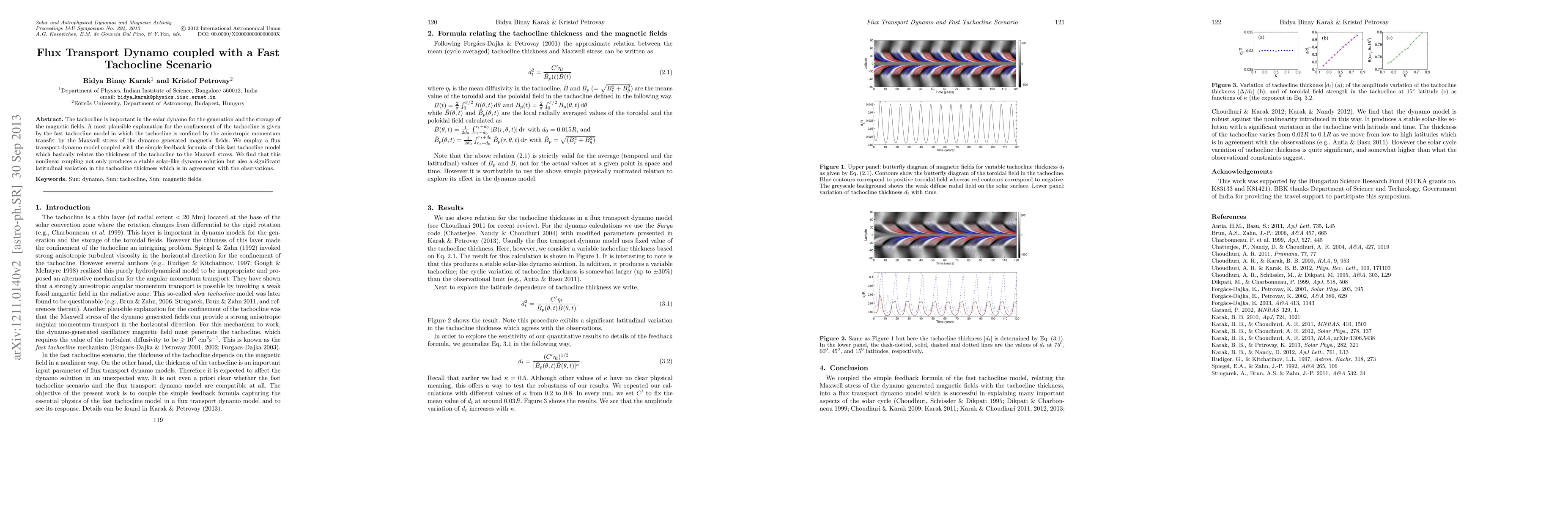 This paper explores a flux transport dynamo model linked with a fast tachocline scenario, demonstrating that this coupling produces a stable solar-like dynamo and a latitudinal variation in tachocline thickness consistent with observational data.