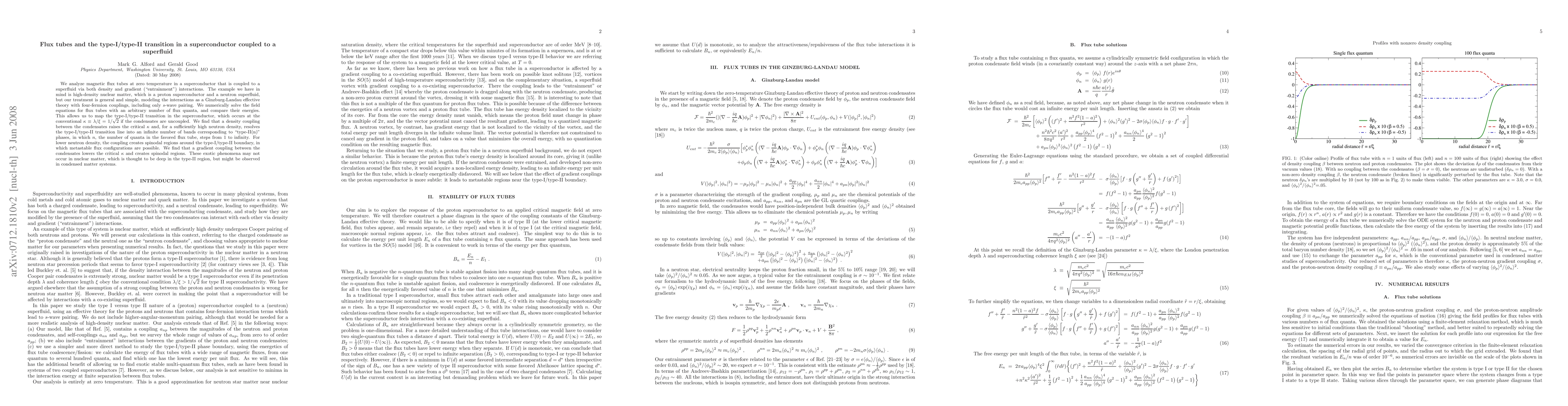 This research explores magnetic flux tubes in a superconductor linked to a superfluid, modeling interactions via a Ginzburg-Landau theory. It finds that density coupling raises the critical kappa, potentially transforming the type-I/type-II transition into 'type-II(n)' phases. Gradient coupling, however, lowers kappa and generates spinodal regions. These effects might be observable in certain condensed matter systems, not just in nuclear matter.