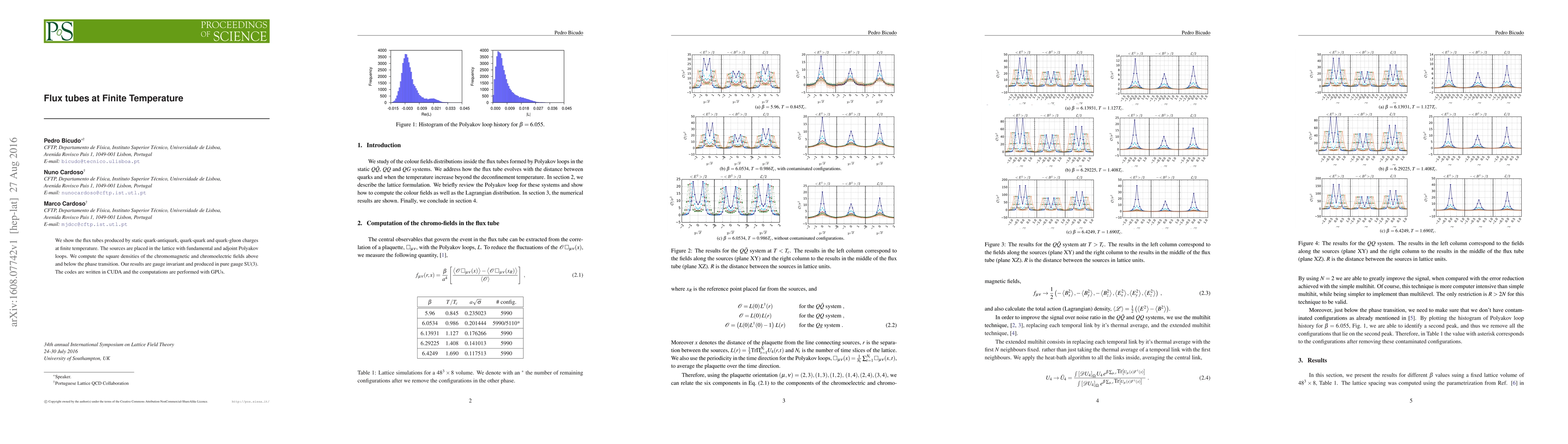 We show the flux tubes produced by static quark-antiquark, quark-quark and quark-gluon charges at finite temperature. The sources are placed in the lattice with fundamental and adjoint Polyakov loops. We compute the square densities of the chromomagnetic and chromoelectric fields above and below the phase transition. Our results are gauge invariant and produced in pure gauge SU(3). The codes are written in CUDA and the computations are performed with GPUs.
