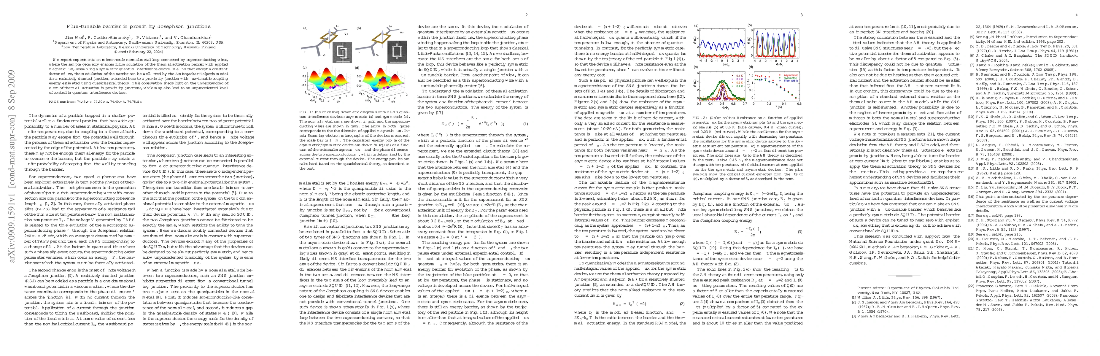 This paper reports on experiments demonstrating a flux-tunable barrier in proximity Josephson junctions, where thermal activation barrier modulation aligns with the Ambegaokar-Halperin model, offering insights into thermal fluctuations and potential control in quantum interference devices.