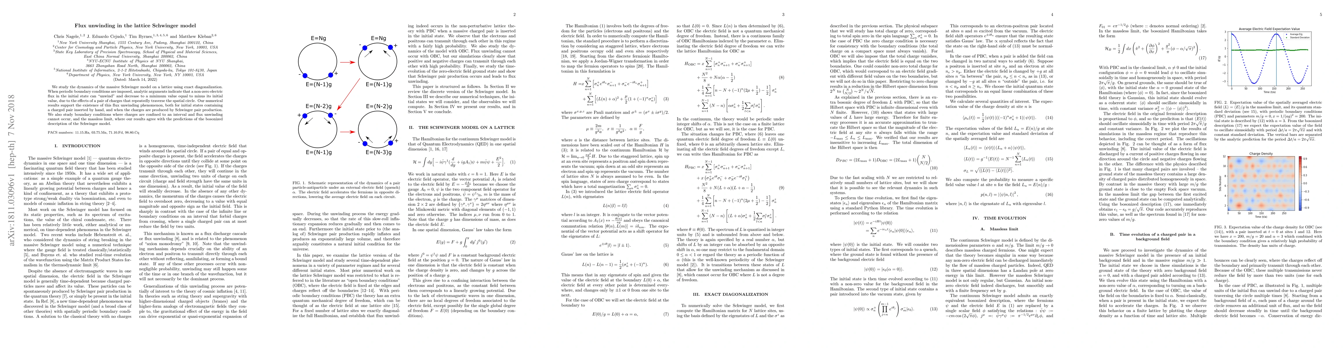 The Schwinger model's electric flux unwinds to its minimum value when a charged pair is inserted, with numerical results supporting this phenomenon under different boundary conditions.