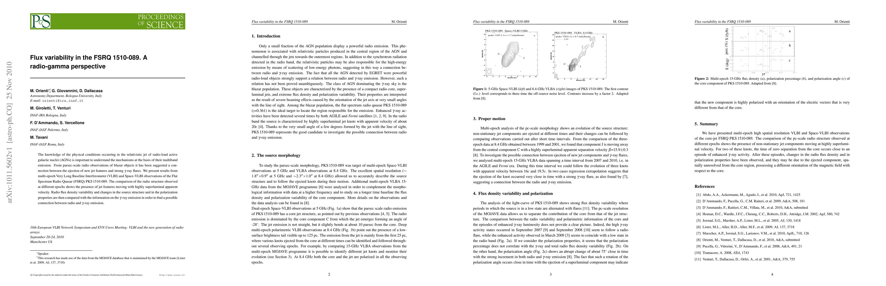 This paper investigates the flux variability in the radio-loud AGN FSRQ PKS 1510-089 using VLBI observations, revealing jet features with superluminal velocities. The study compares radio flux density variations and structural changes with gamma-ray emission data to explore potential connections between radio and gamma-ray emissions.