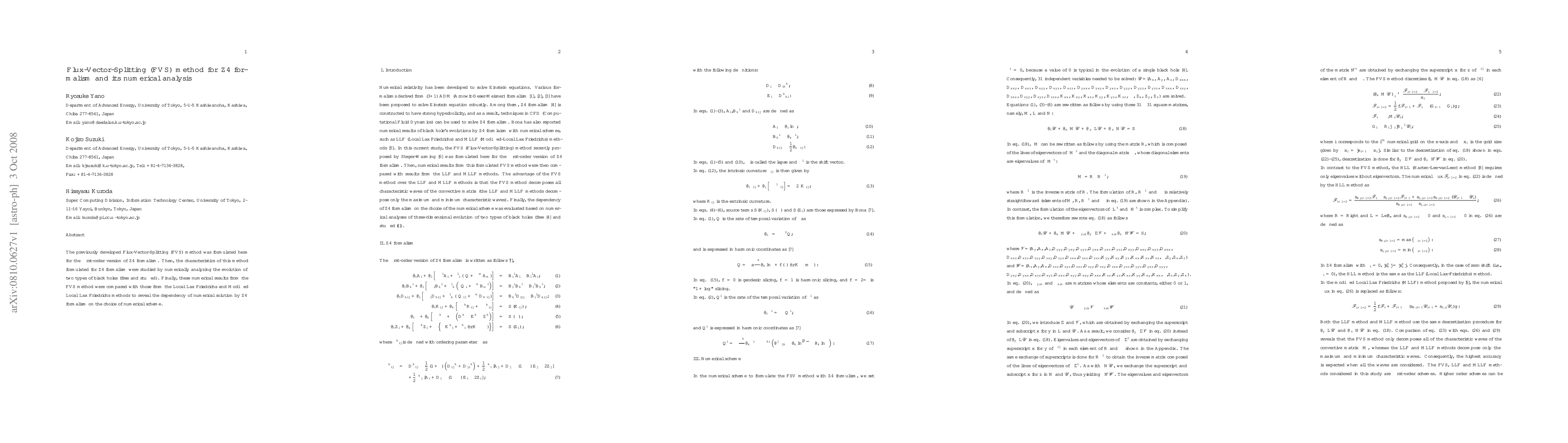 The Flux-Vector-Splitting method was applied to the Z4 formalism for black hole simulations, showing a comparison with traditional Lax Friedrichs methods, highlighting the dependency of numerical solutions on formalism choice.