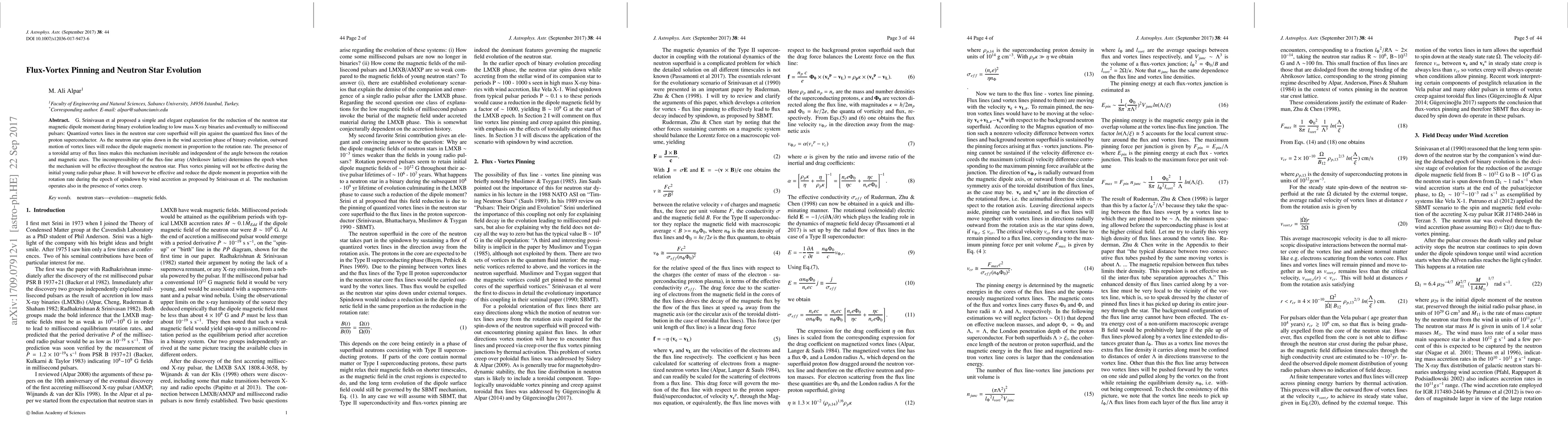 Srinivasan et al. (1990) explain neutron star magnetic dipole moment reduction via vortex pinning against flux lines in the core superfluid, particularly during spindown phases in binary evolution. This mechanism is effective as neutron stars transition from radio pulsars to millisecond pulsars, reducing the dipole moment proportionally with the rotation rate.