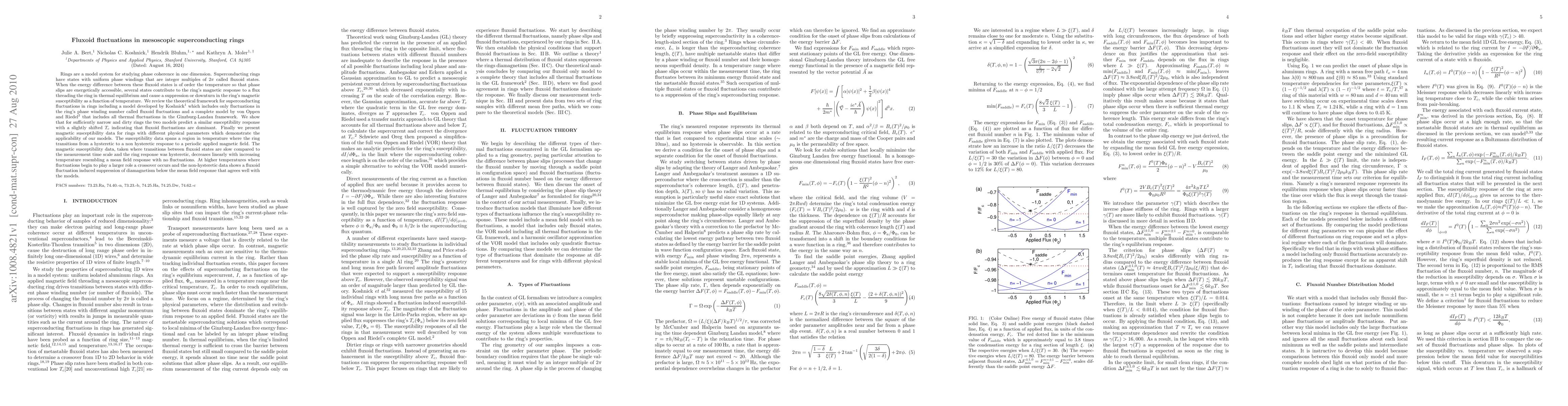 This paper reviews theoretical frameworks for fluxoid fluctuations in mesoscopic superconducting rings, comparing Koshnick's model focusing on phase winding number and von Oppen and Riedel's complete thermal fluctuation model. Experimental data shows a transition from hysteretic to non-hysteretic magnetic susceptibility with temperature, aligning with theoretical predictions of fluxoid fluctuation dominance in narrow, dirty rings.