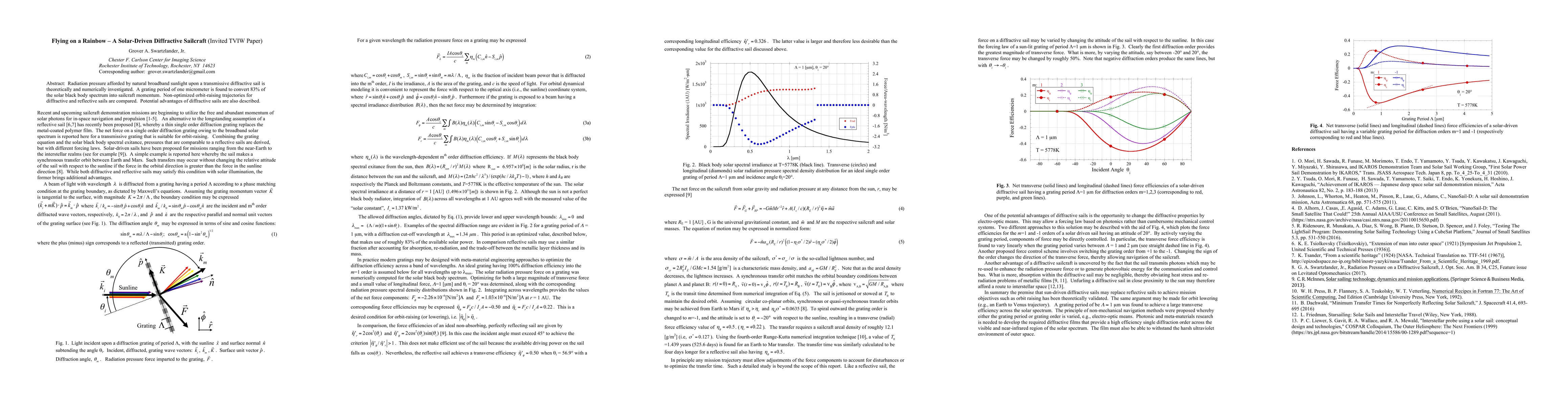 Researchers found that a transmissive diffractive sail can convert 83% of sunlight into momentum, offering potential advantages over traditional reflective sails for orbit-raising trajectories.