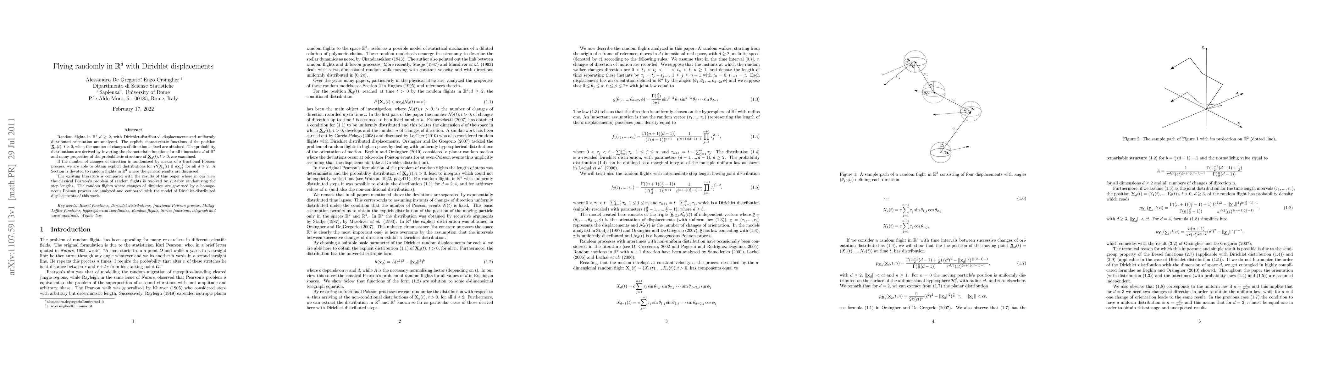 Random flights in $\mathbb{R}^d,d\geq 2,$ with Dirichlet-distributed displacements and uniformly distributed orientation are analyzed. The explicit characteristic functions of the position $\underline{\bf X}_d(t),\,t>0,$ when the number of changes of direction is fixed are obtained. The probability distributions are derived by inverting the characteristic functions for all dimensions $d$ of $\mathbb{R}^d$ and many properties of the probabilistic structure of $\underline{\bf X}_d(t),t>0,$ are examined. If the number of changes of direction is randomized by means of a fractional Poisson process, we are able to obtain explicit distributions for $P\{\underline{\bf X}_d(t)\in d\underline{\bf x}_d\}$ for all $d\geq 2$. A Section is devoted to random flights in $\mathbb{R}^3$ where the general results are discussed. The existing literature is compared with the results of this paper where in our view the classical Pearson's problem of random flights is resolved by suitably randomizing the step lengths. The random flights where changes of direction are governed by a homogeneous Poisson process are analyzed and compared with the model of Dirichlet-distributed displacements of this work.