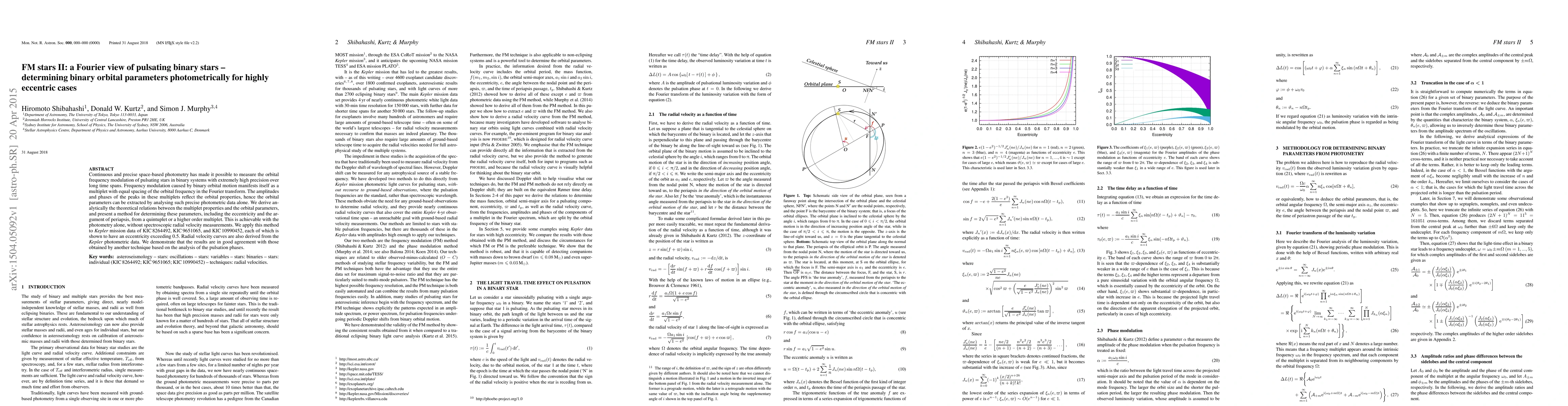 Continuous and precise space-based photometry has made it possible to measure the orbital frequency modulation of pulsating stars in binary systems with extremely high precision over long time spans. Frequency modulation caused by binary orbital motion manifests itself as a multiplet with equal spacing of the orbital frequency in the Fourier transform. The amplitudes and phases of the peaks in these multiplets reflect the orbital properties, hence the orbital parameters can be extracted by analysing such precise photometric data alone. We derive analytically the theoretical relations between the multiplet properties and the orbital parameters, and present a method for determining these parameters, including the eccentricity and the argument of periapsis, from a quintuplet or a higher order multiplet. This is achievable with the photometry alone, without spectroscopic radial velocity measurements. We apply this method to Kepler mission data of KIC8264492, KIC9651065, and KIC10990452, each of which is shown to have an eccentricity exceeding 0.5. Radial velocity curves are also derived from the Kepler photometric data. We demonstrate that the results are in good agreement with those obtained by another technique based on the analysis of the pulsation phases.