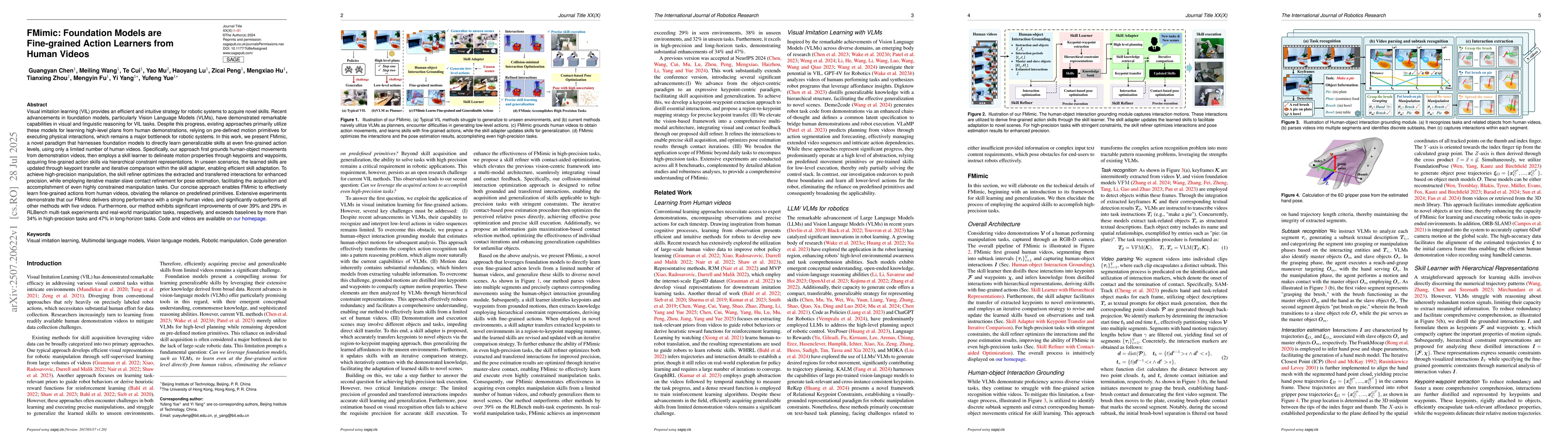 The research introduces FMimic, a novel paradigm that leverages foundation models to learn fine-grained actions directly from human videos, outperforming existing methods in visual imitation learning tasks.