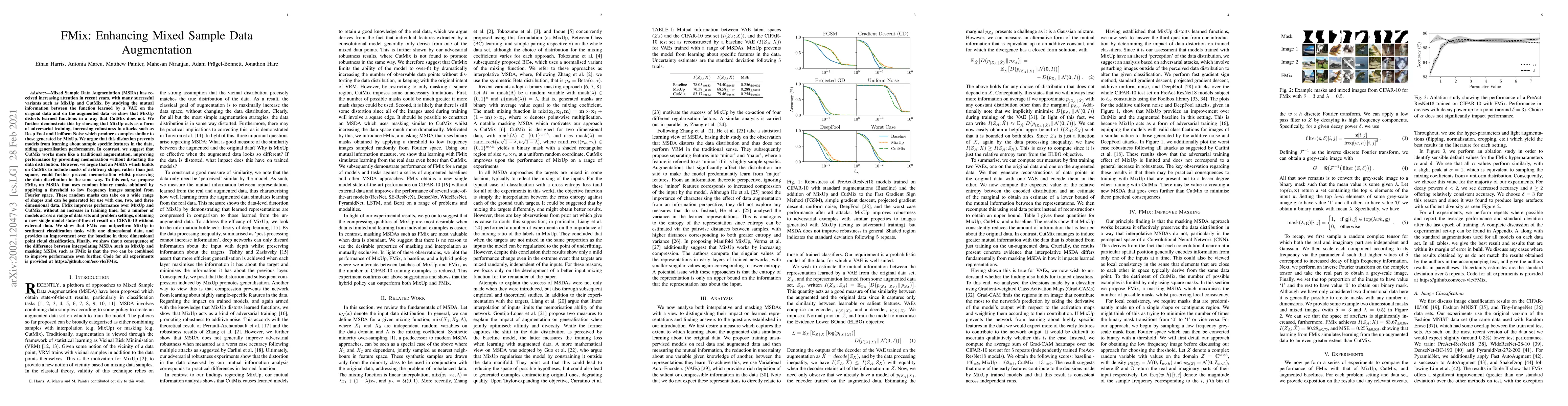 Mixed Sample Data Augmentation (MSDA) has received increasing attention in recent years, with many successful variants such as MixUp and CutMix. By studying the mutual information between the function learned by a VAE on the original data and on the augmented data we show that MixUp distorts learned functions in a way that CutMix does not. We further demonstrate this by showing that MixUp acts as a form of adversarial training, increasing robustness to attacks such as Deep Fool and Uniform Noise which produce examples similar to those generated by MixUp. We argue that this distortion prevents models from learning about sample specific features in the data, aiding generalisation performance. In contrast, we suggest that CutMix works more like a traditional augmentation, improving performance by preventing memorisation without distorting the data distribution. However, we argue that an MSDA which builds on CutMix to include masks of arbitrary shape, rather than just square, could further prevent memorisation whilst preserving the data distribution in the same way. To this end, we propose FMix, an MSDA that uses random binary masks obtained by applying a threshold to low frequency images sampled from Fourier space. These random masks can take on a wide range of shapes and can be generated for use with one, two, and three dimensional data. FMix improves performance over MixUp and CutMix, without an increase in training time, for a number of models across a range of data sets and problem settings, obtaining a new single model state-of-the-art result on CIFAR-10 without external data. Finally, we show that a consequence of the difference between interpolating MSDA such as MixUp and masking MSDA such as FMix is that the two can be combined to improve performance even further. Code for all experiments is provided at https://github.com/ecs-vlc/FMix .