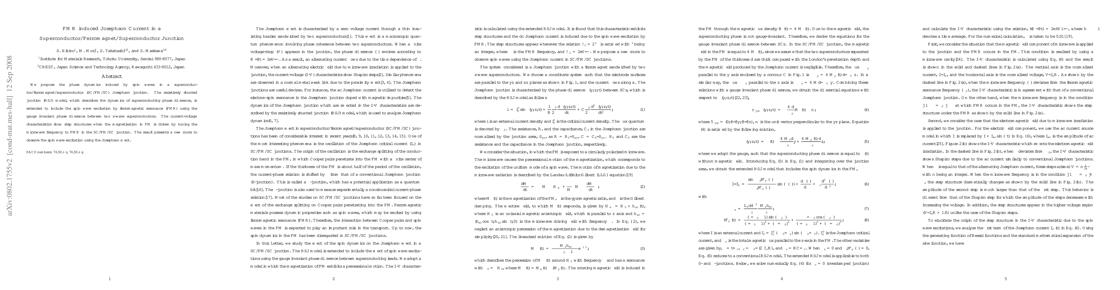 Researchers propose a new way to observe spin wave excitation using a superconductor/ferromagnet/superconductor junction, creating step structures in current-voltage characteristics when ferromagnetic resonance is induced.