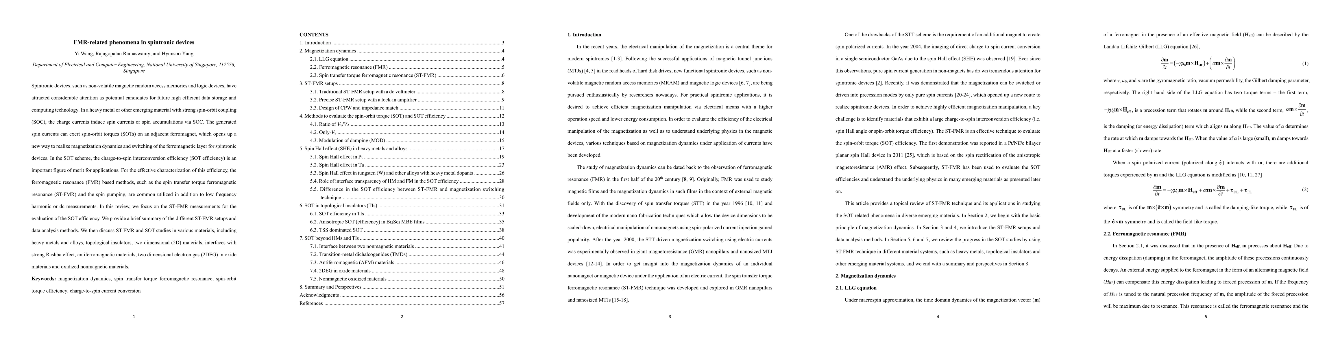 Researchers review the role of ferromagnetic resonance in characterizing spin-orbit torque efficiency in spintronic devices, focusing on measurement techniques and applications in various materials.